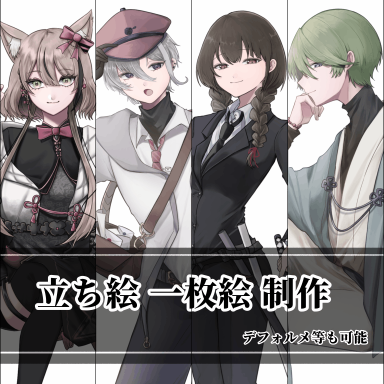 1枚絵、立ち絵、デフォルメ描きます