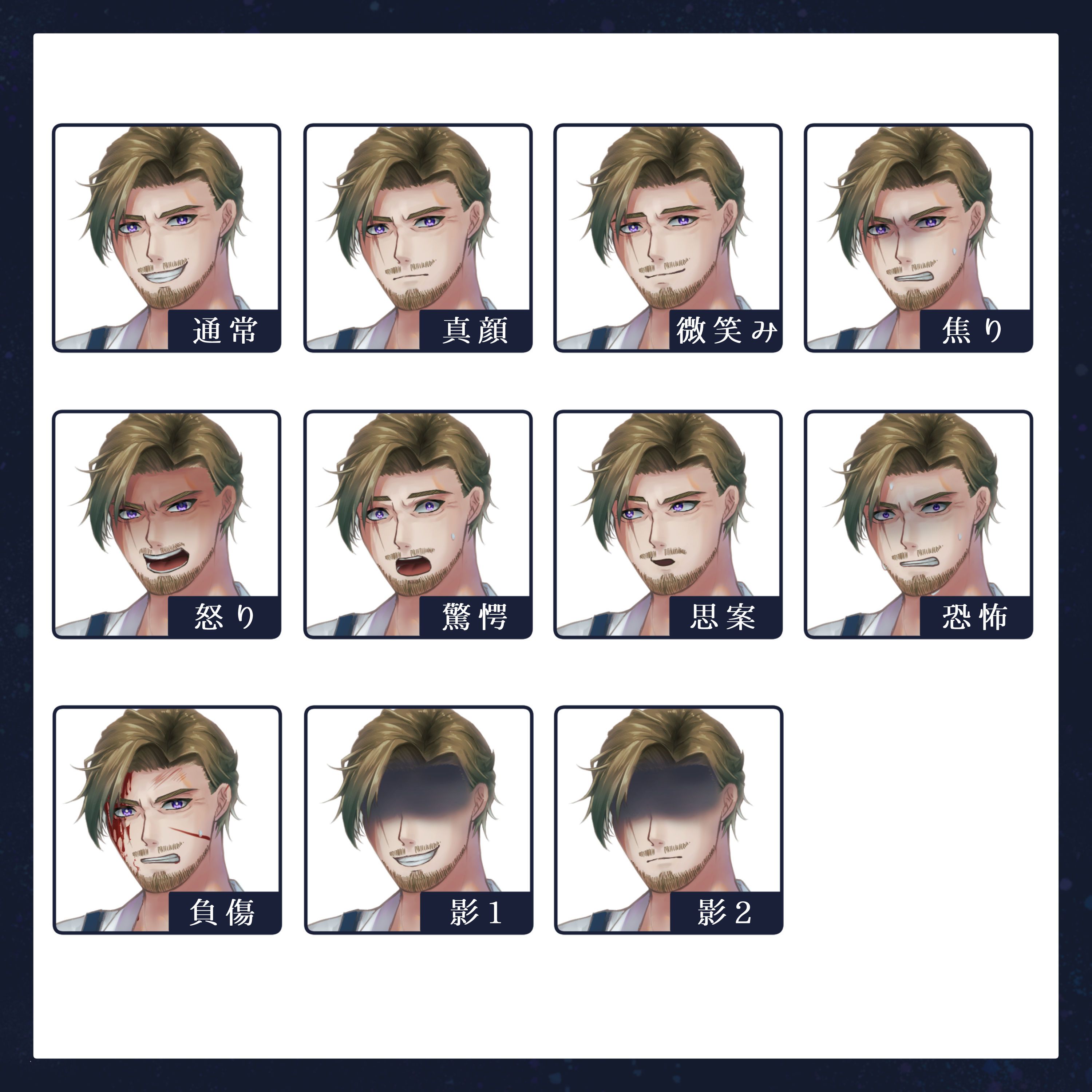通常立ち絵に加え、10種類の表情差分を作成しました。