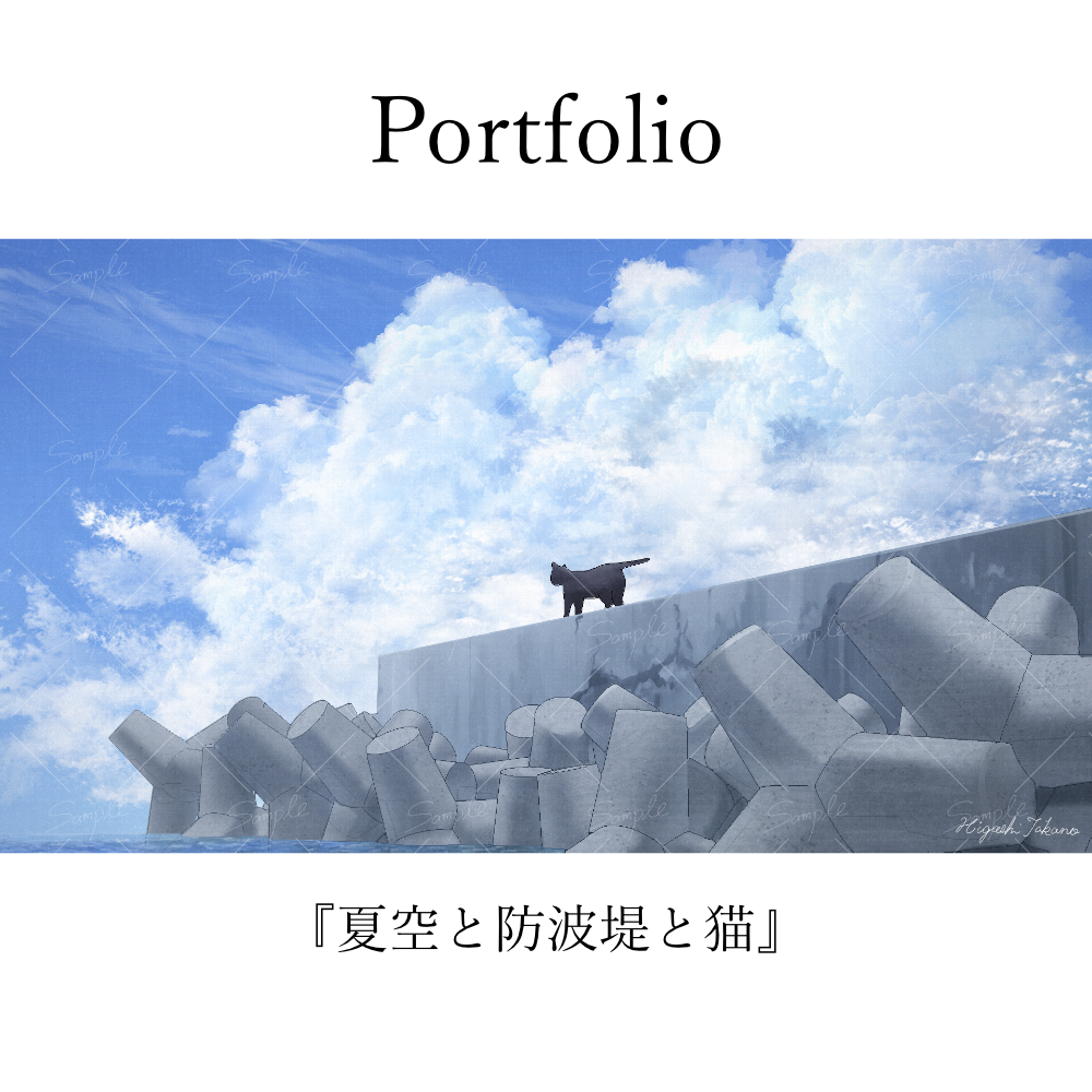 夏空と防波堤と猫