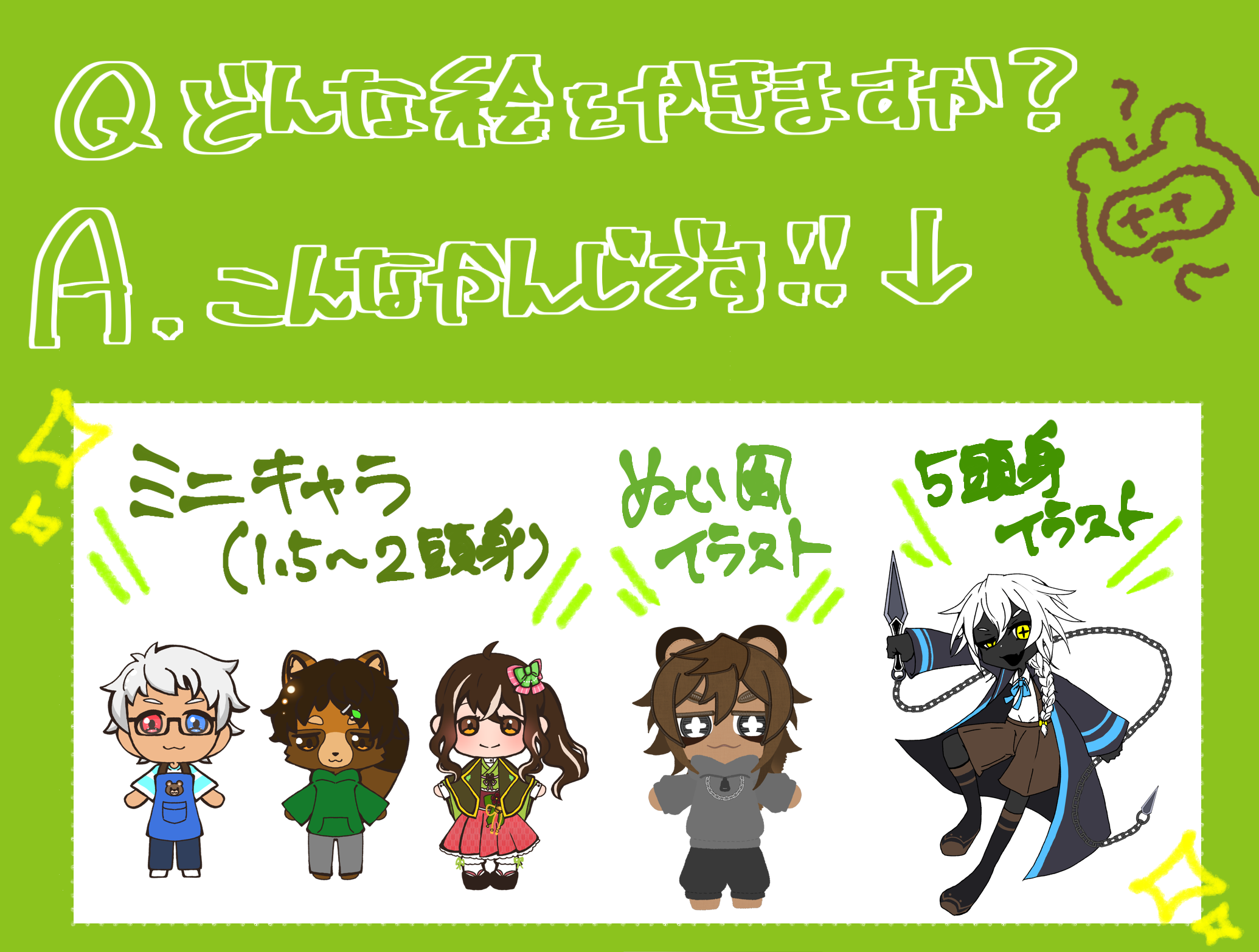 デフォルメイラスト描きます!3頭身が得意です!