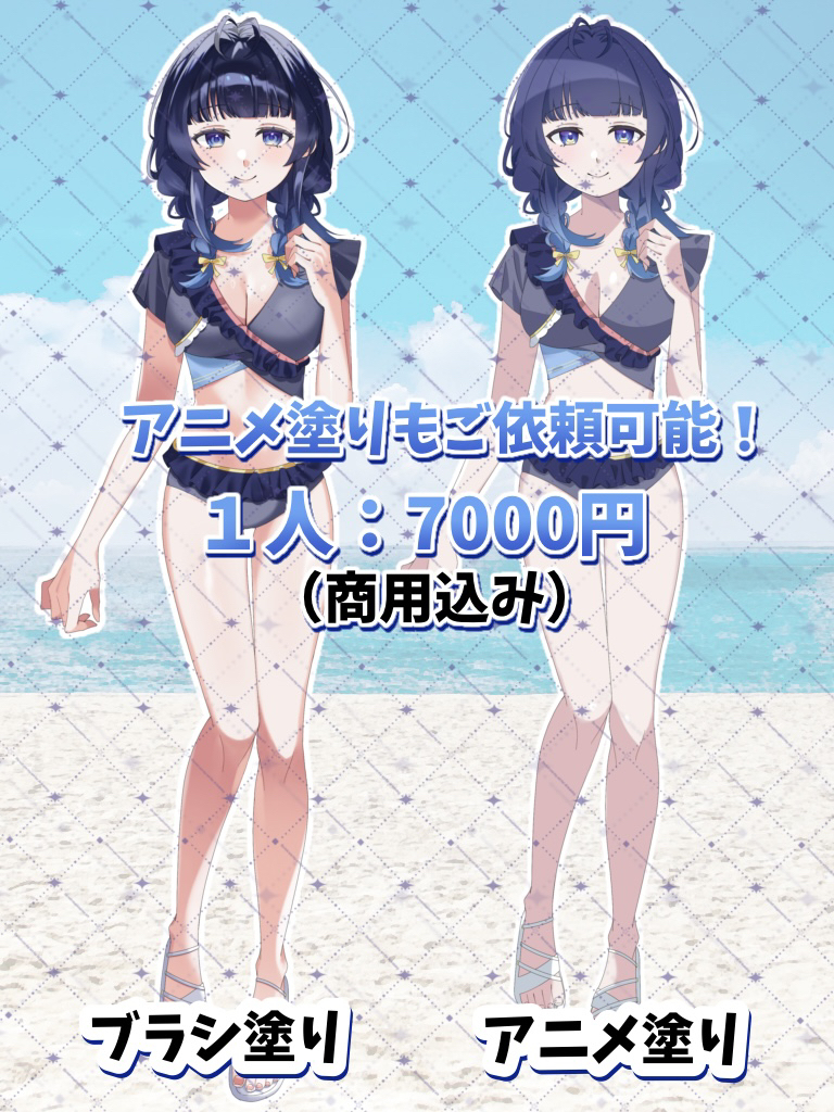 8月に海開きがあるとのことで、普段よりも抑えた価格で水着のご依頼を募集致します🧸 💠ブラシ塗り/アニメ塗り 価格の違う2つの塗りから選ぶことが可能です 💠男性女性問わず描くことが可能です!
