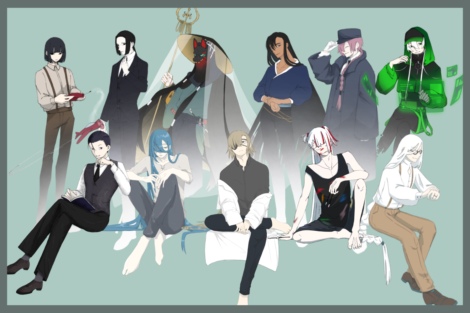 全て自キャラクターです。制作時間は5〜35時間と幅があります。一部立ち絵は服や小物などを細かくパーツ分けしており、そのため時間がかかっています。