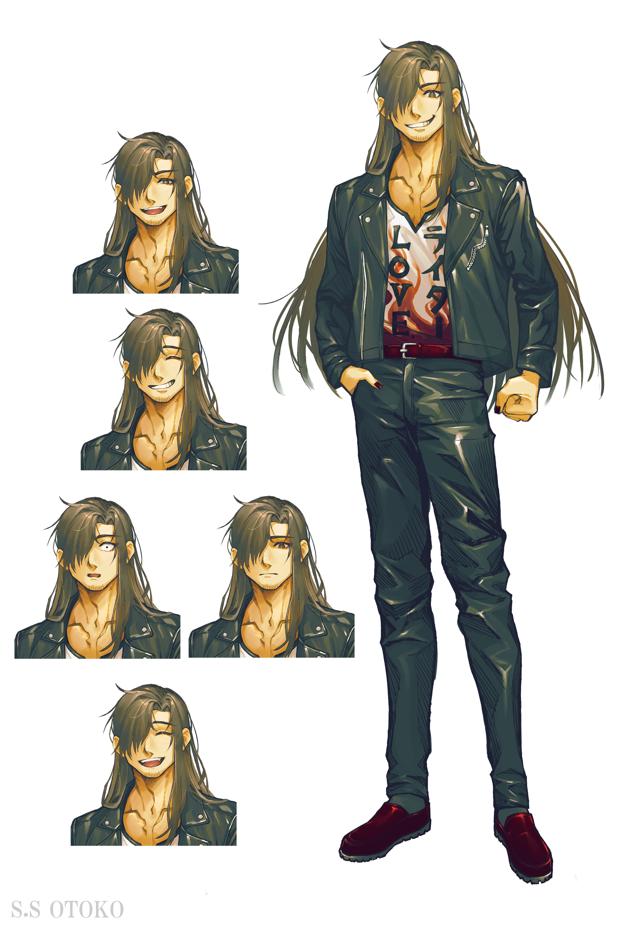 長髪メッシュの男性【表情通常+8種】