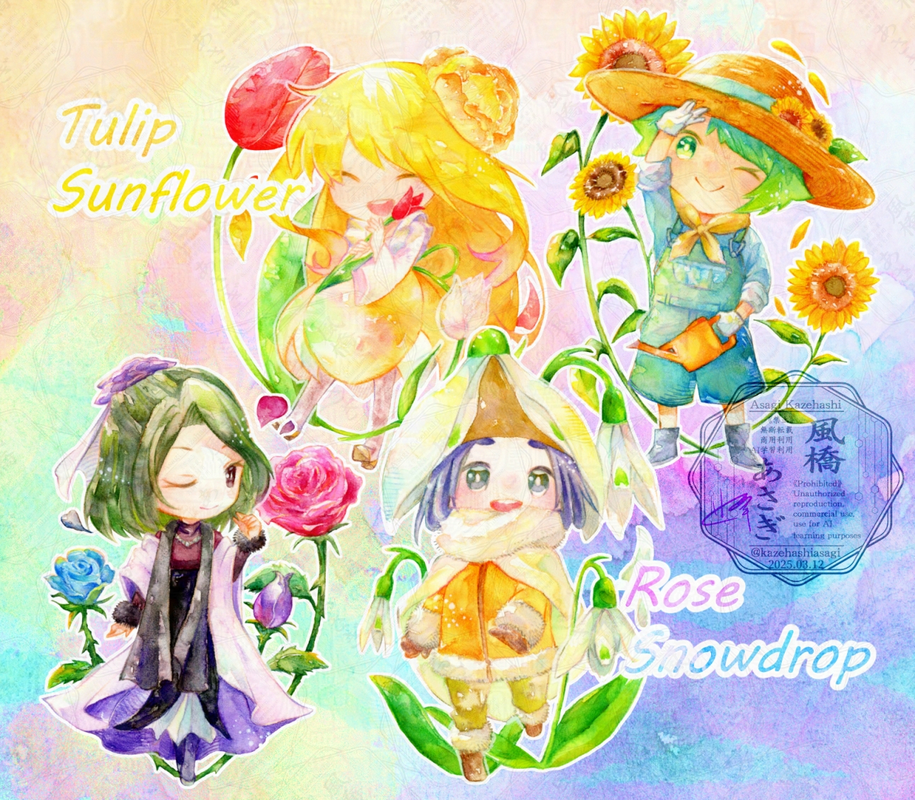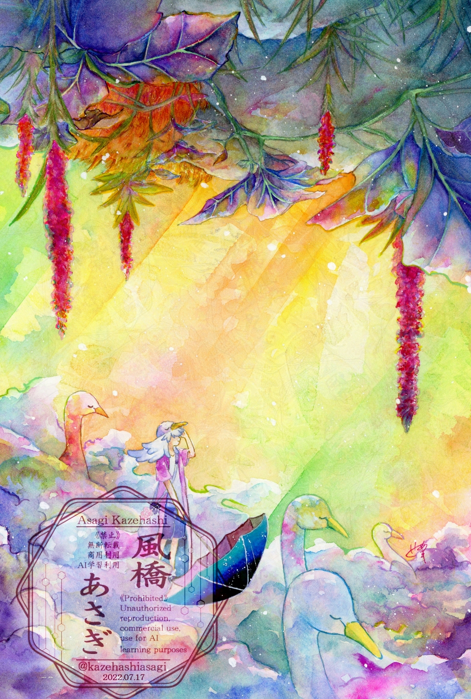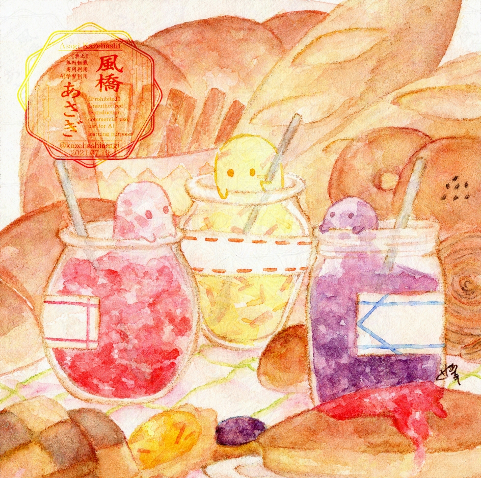 透明水彩を使用した作品のサンプルです。
