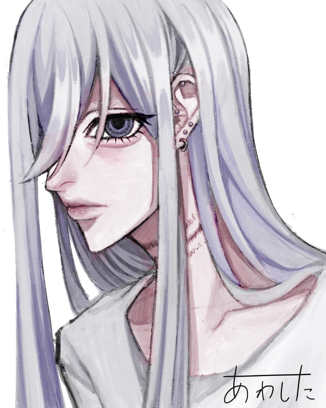 白髪で長髪の男の子です。