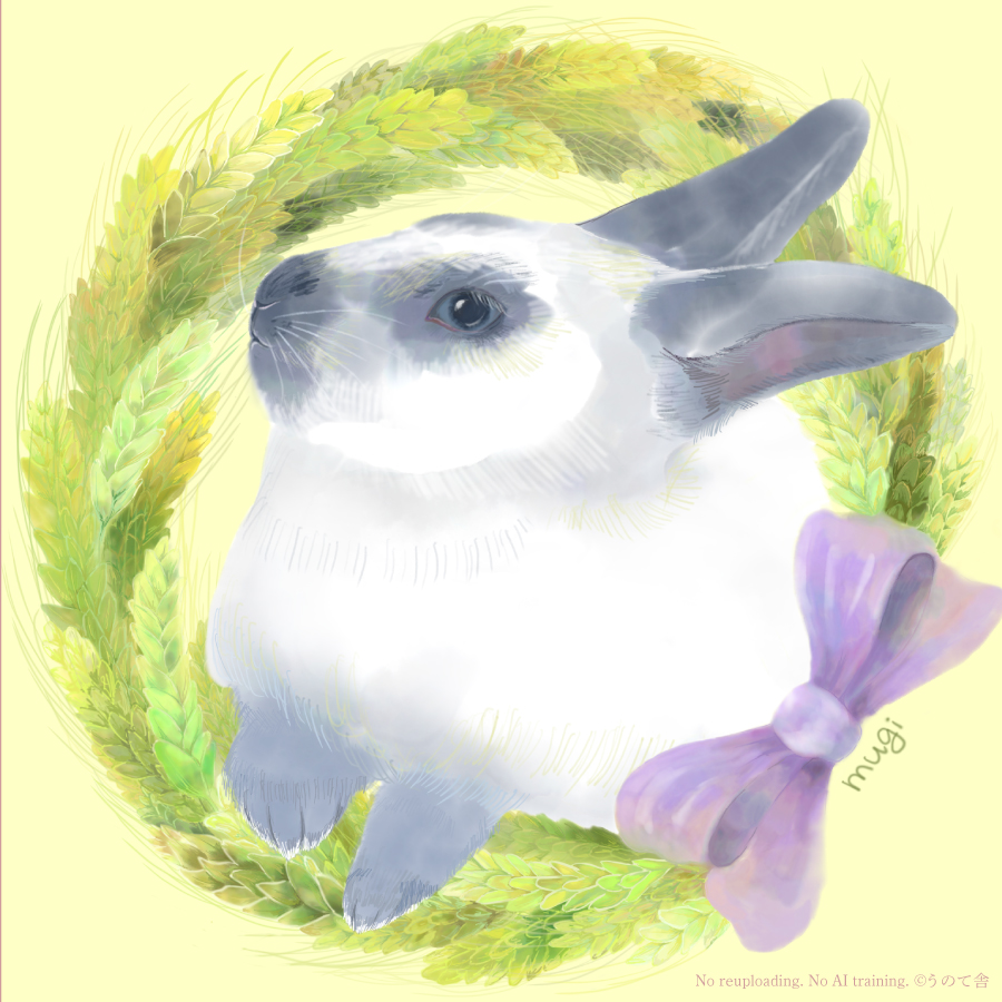 あなたのうさぎさんの似顔絵を描く「うさコみっしょん」参考画像です。 制作期間15日程度、SNSのアイコンやヘッダー用などにどうぞ。 うさぎさんの周りのお花の輪っかはオリジナルでも作成可能です(追加料金)。