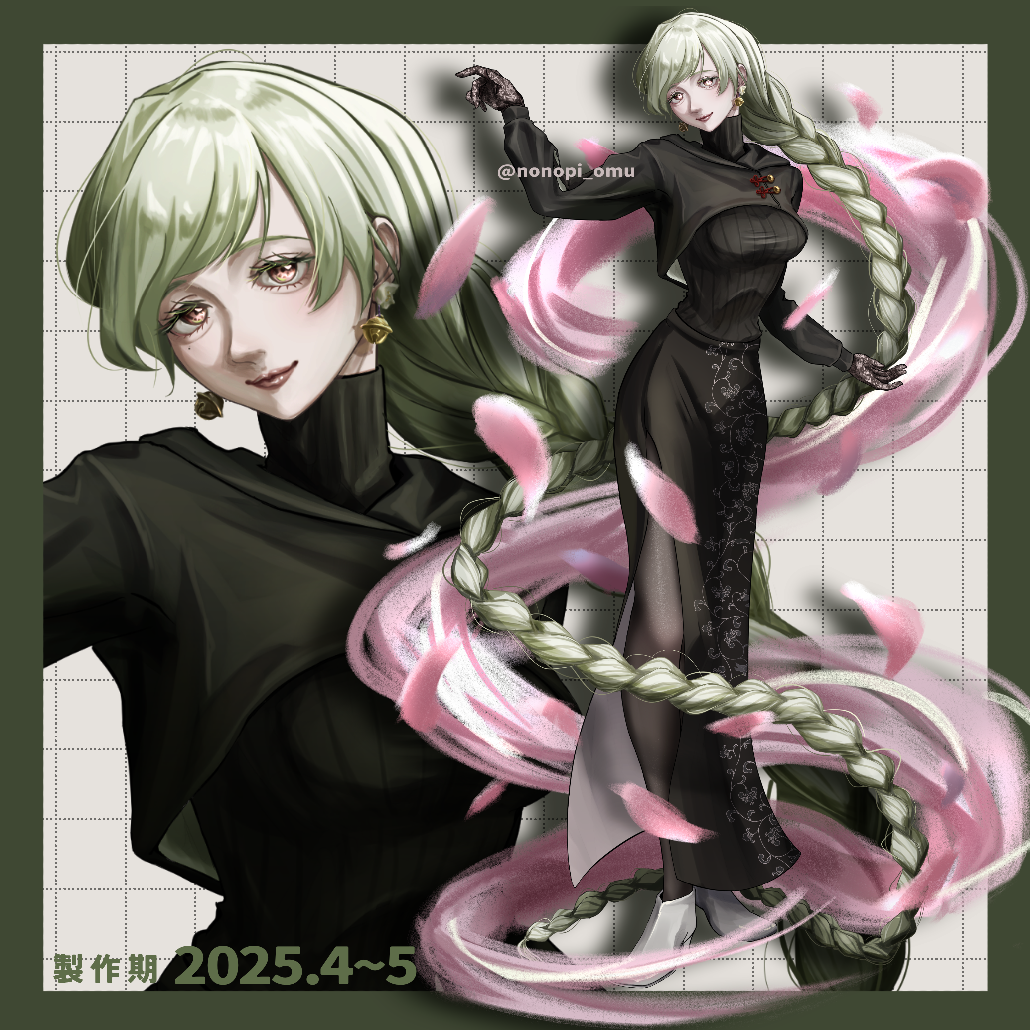 女性の立ち絵です。タイツと金属、髪の質感にこだわりました。