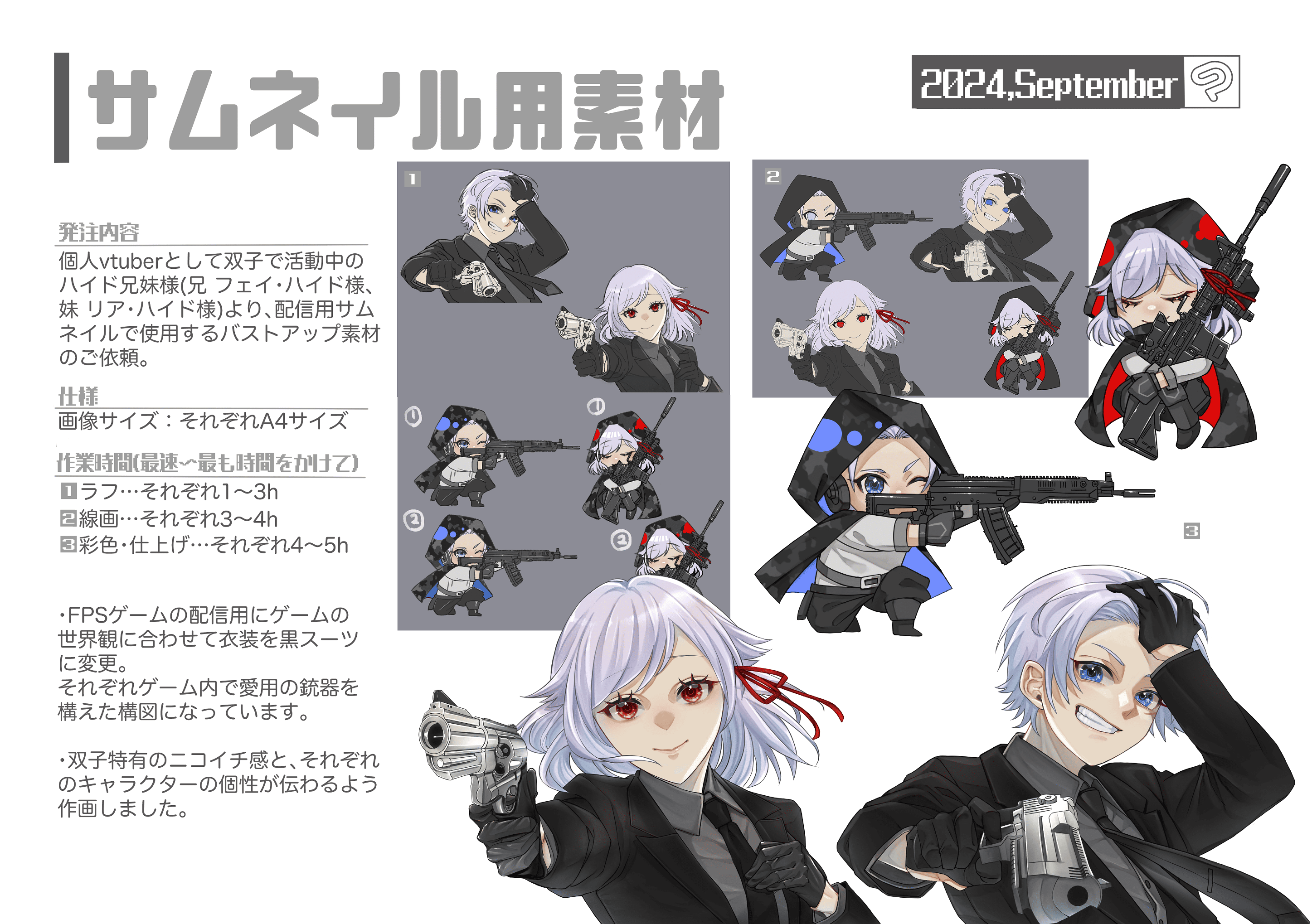ゲーム・TRPG用立ち絵(武器等小物と表情差分セット)