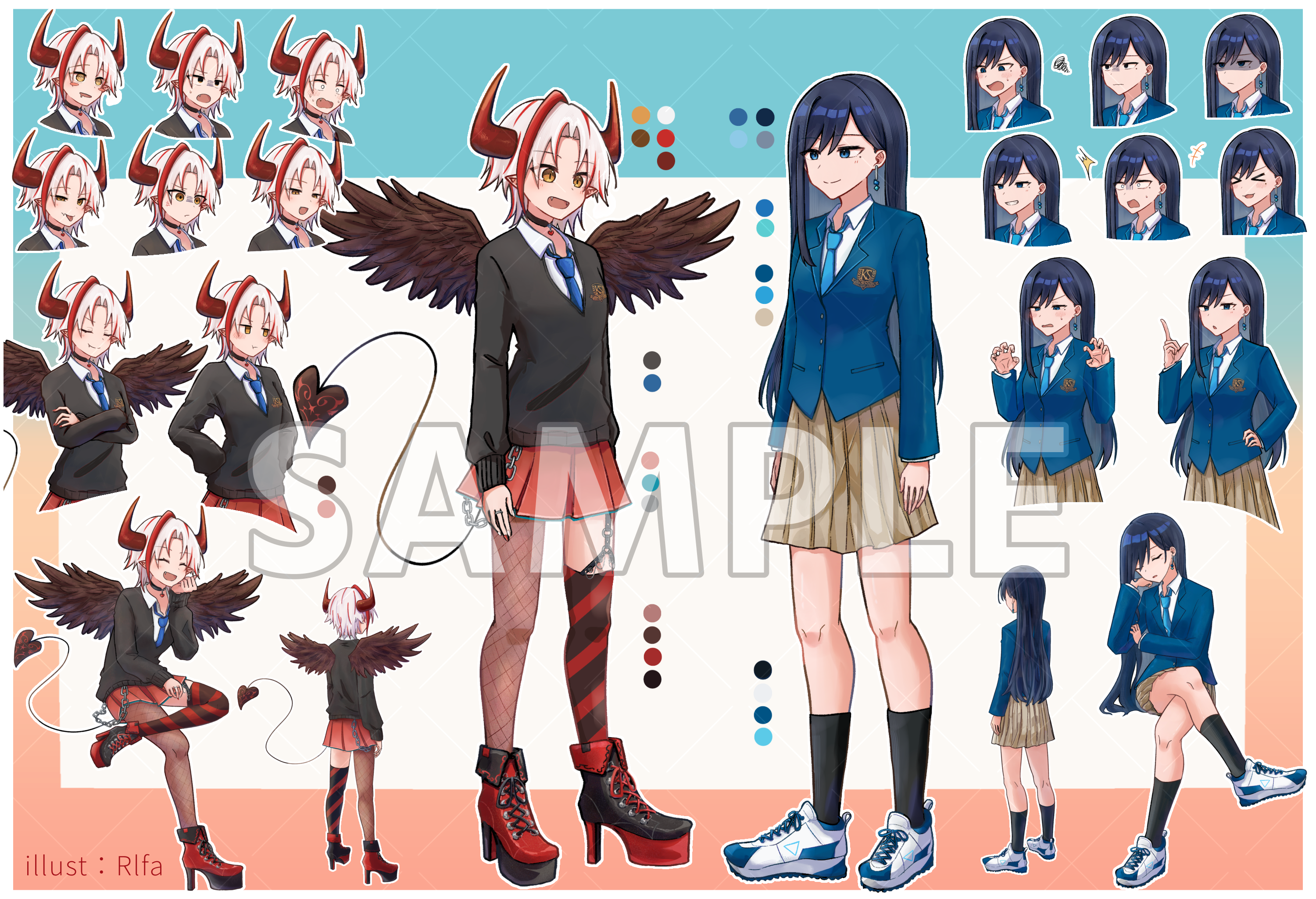 ご依頼で描かせていただきました。 腕や表情などのパーツ分けイラストです。