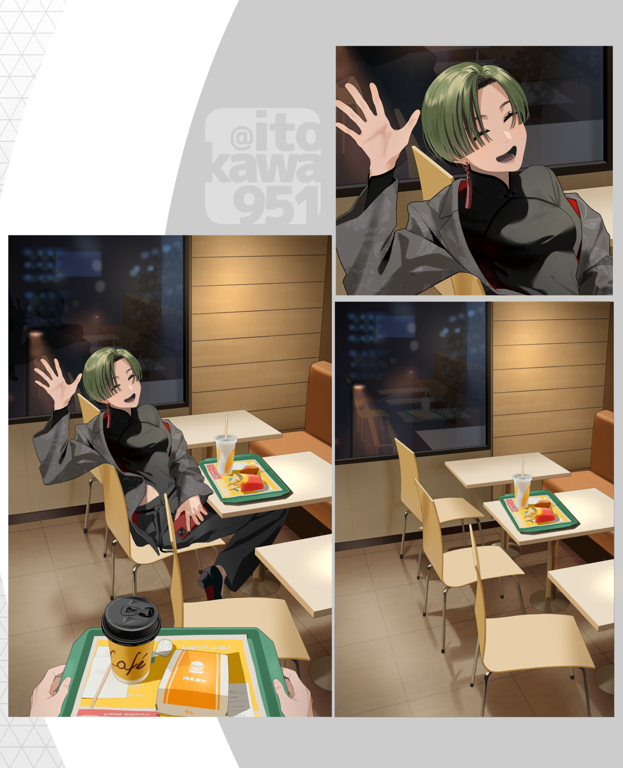 かっこいい女の子が笑顔で手を振ってくれたらかわいくてうれしいなと思って描きました。