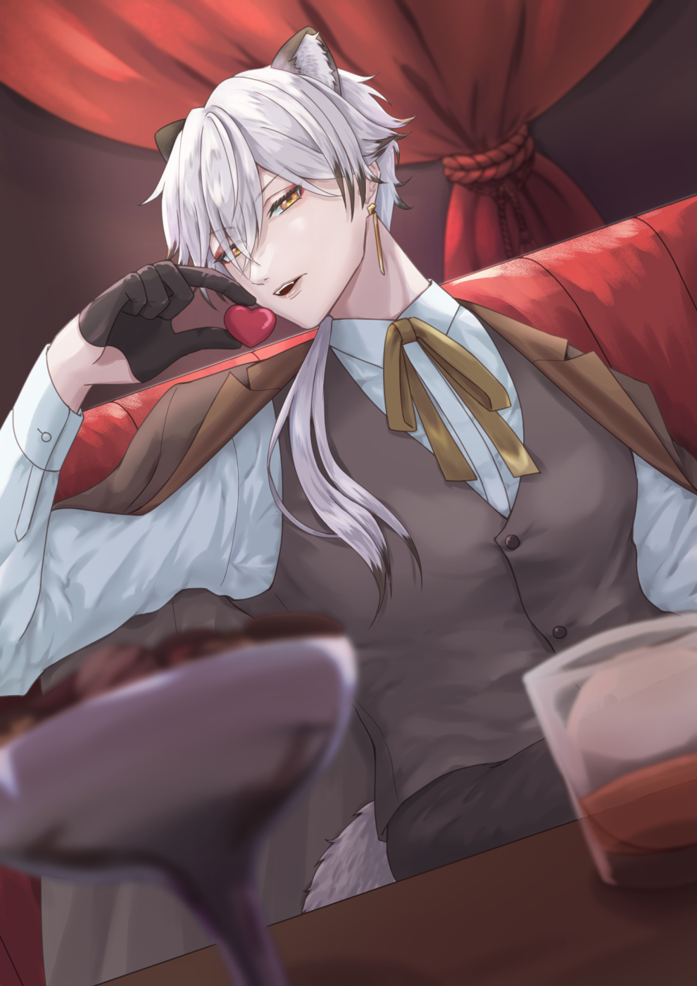 VTuber明狸 柊(あかり しゅう)さんの BARでのイメージのファンアートです お酒の好きな方なので、BARでお酒を楽しむ場面で 大人の男性のかっこよさを出したいと言うコンセプトで描きました 背景、前景ともに素材を使用せず手描きをしております こちらの作品はファンアートの為、参考価格は非公開とさせて頂きます 2025年6月制作