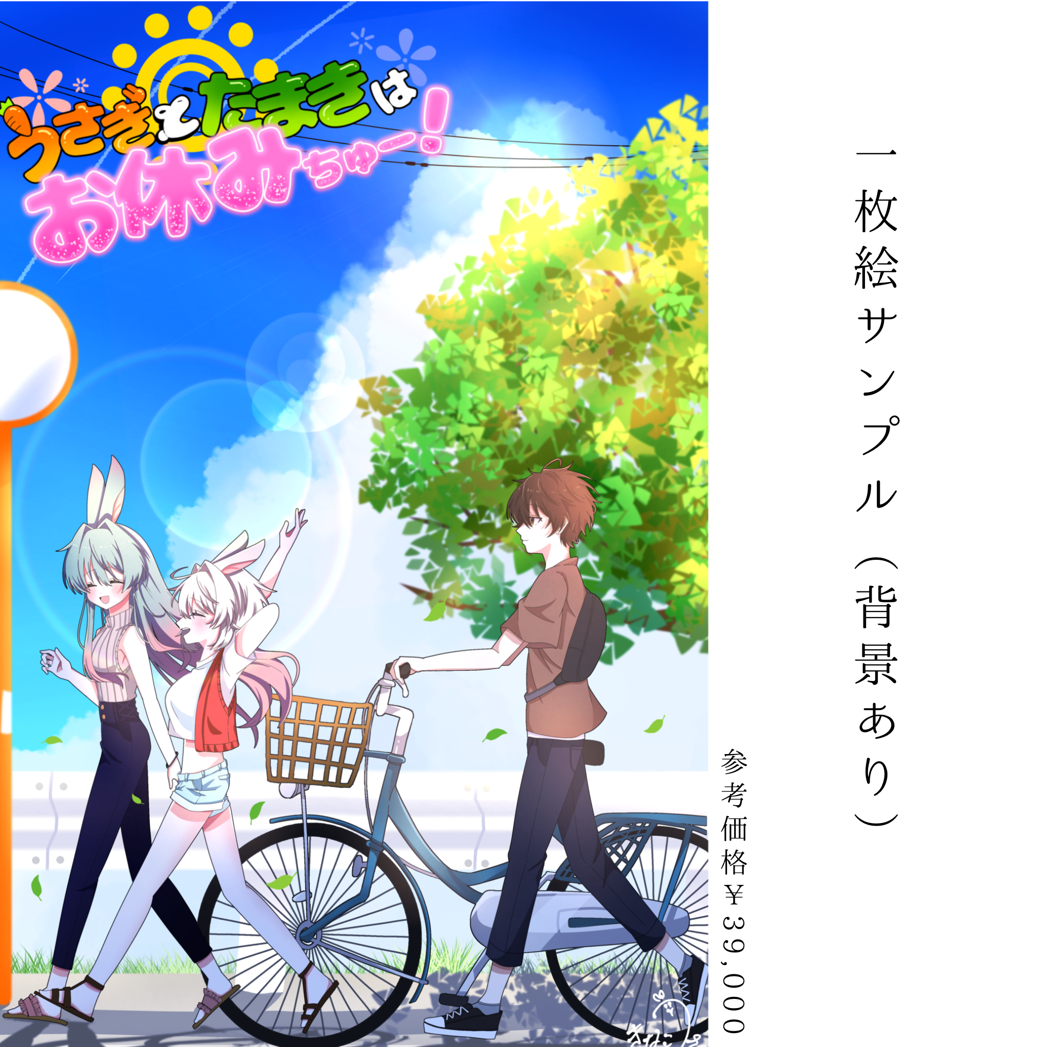 オリジナルゲームのキャラクターを描いた作品です。背景ありのイラストはこんな感じで描いております。