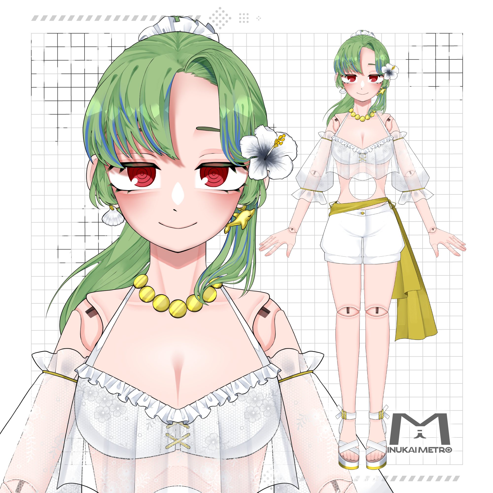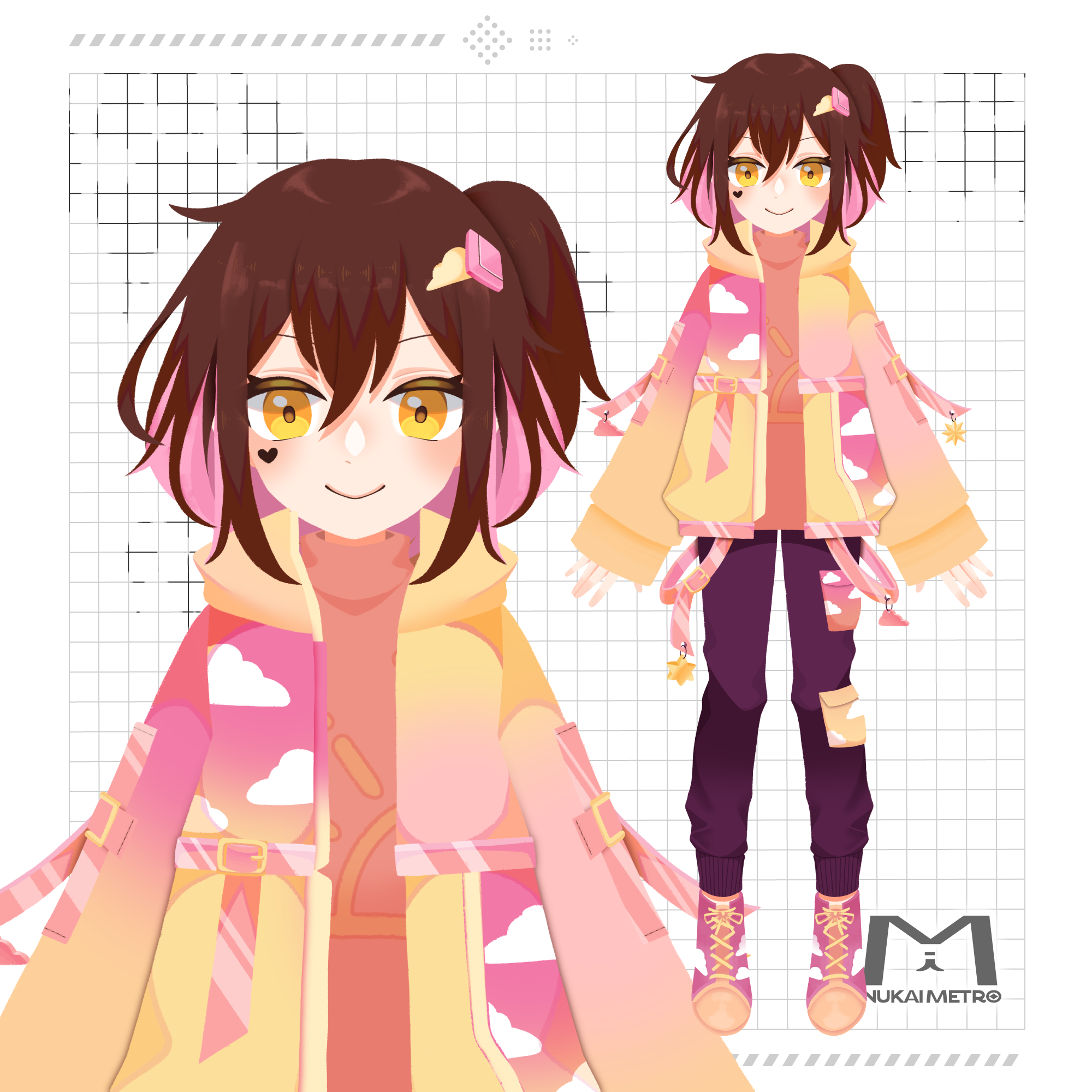 Live2Dでのモデリングができる状態にパーツ分けをして制作します。納品後も無料で追加パーツ分けや塗り足しの作成等を行います。等身イラスト・ミニキャライラスト問わず制作が可能ですので、ご興味があればお気軽にお問い合わせください!