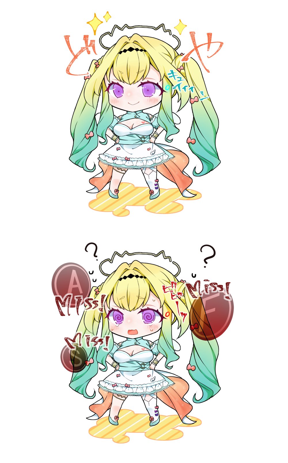 SDキャライラストのサンプルです。参考にどうぞ。 有償イラスト、ファンアートごちゃまぜ。時間は背景や装飾、人数によって作業時間は変動します。