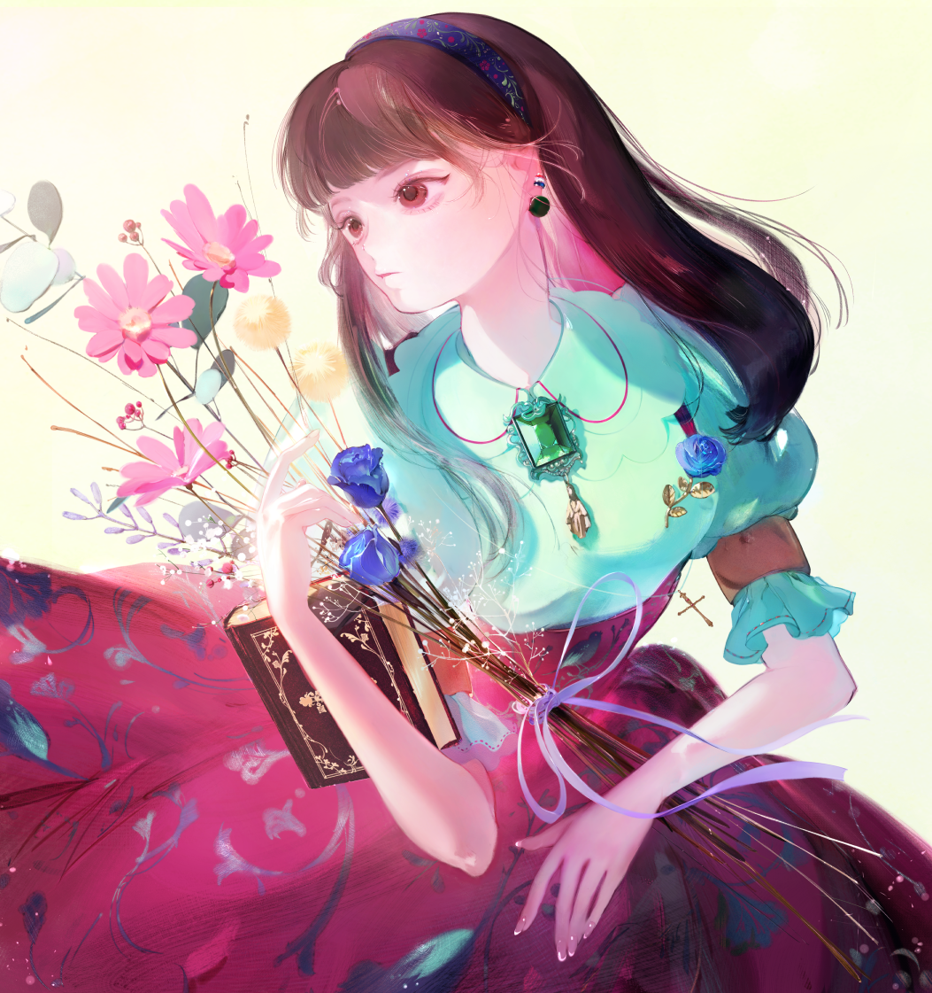 ブローチ、カチューシャの模様、スカートの模様、襟など
