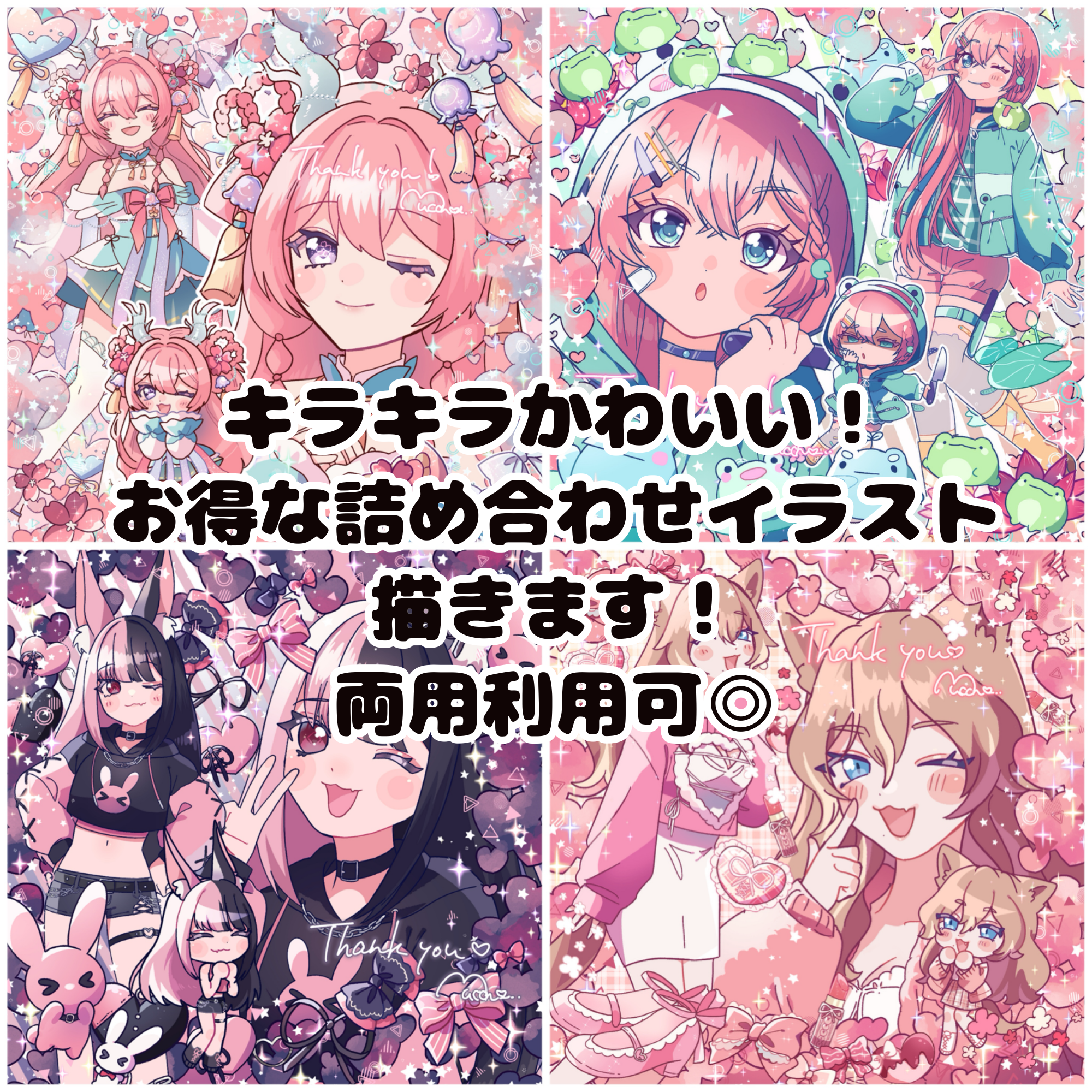 キラキラかわいい♡ バストアップ、全身、SD詰め込み描きます!