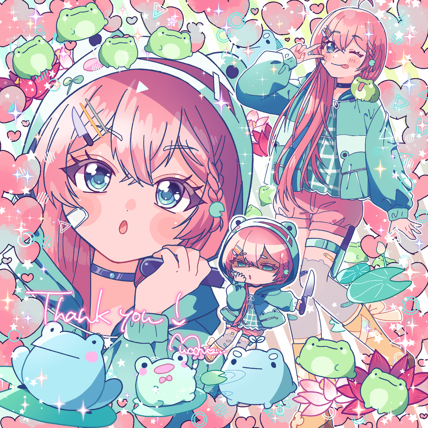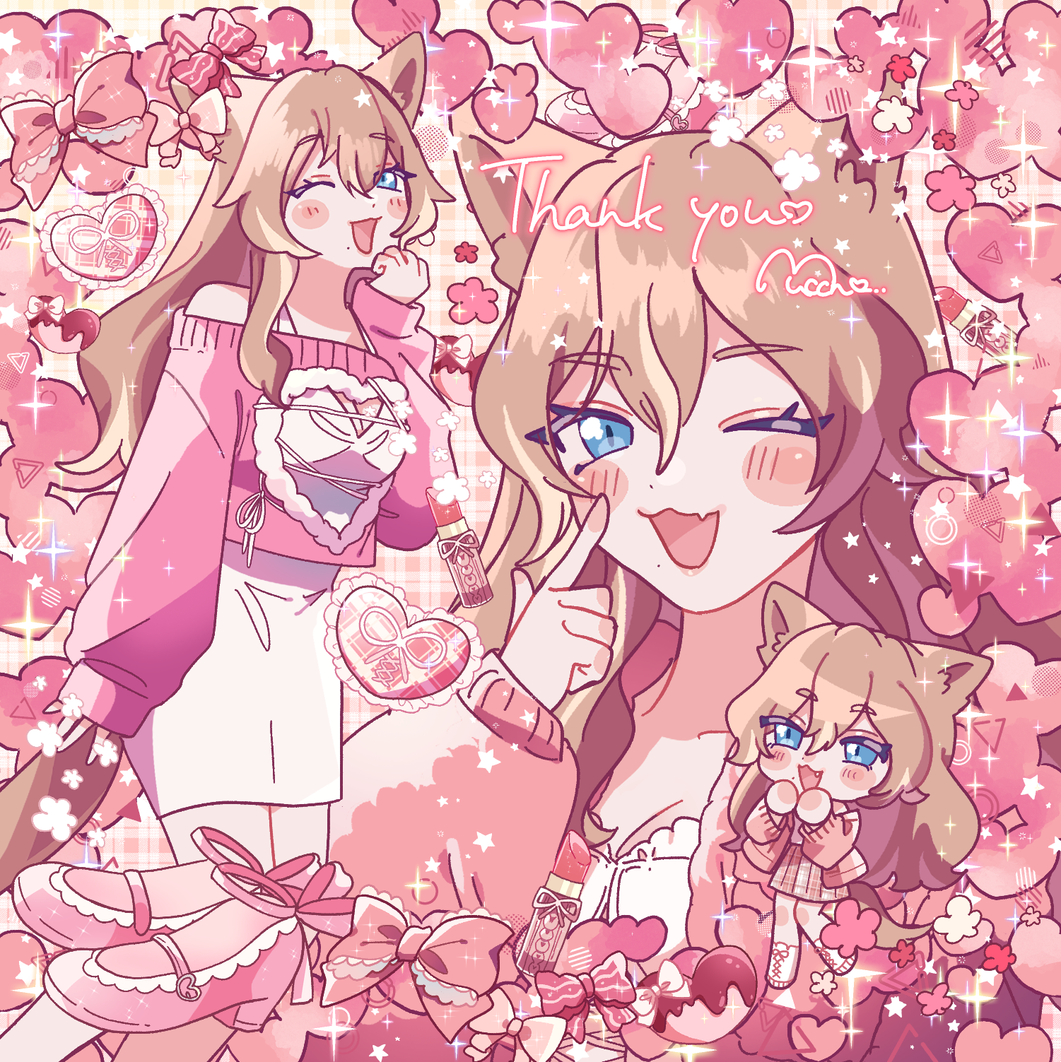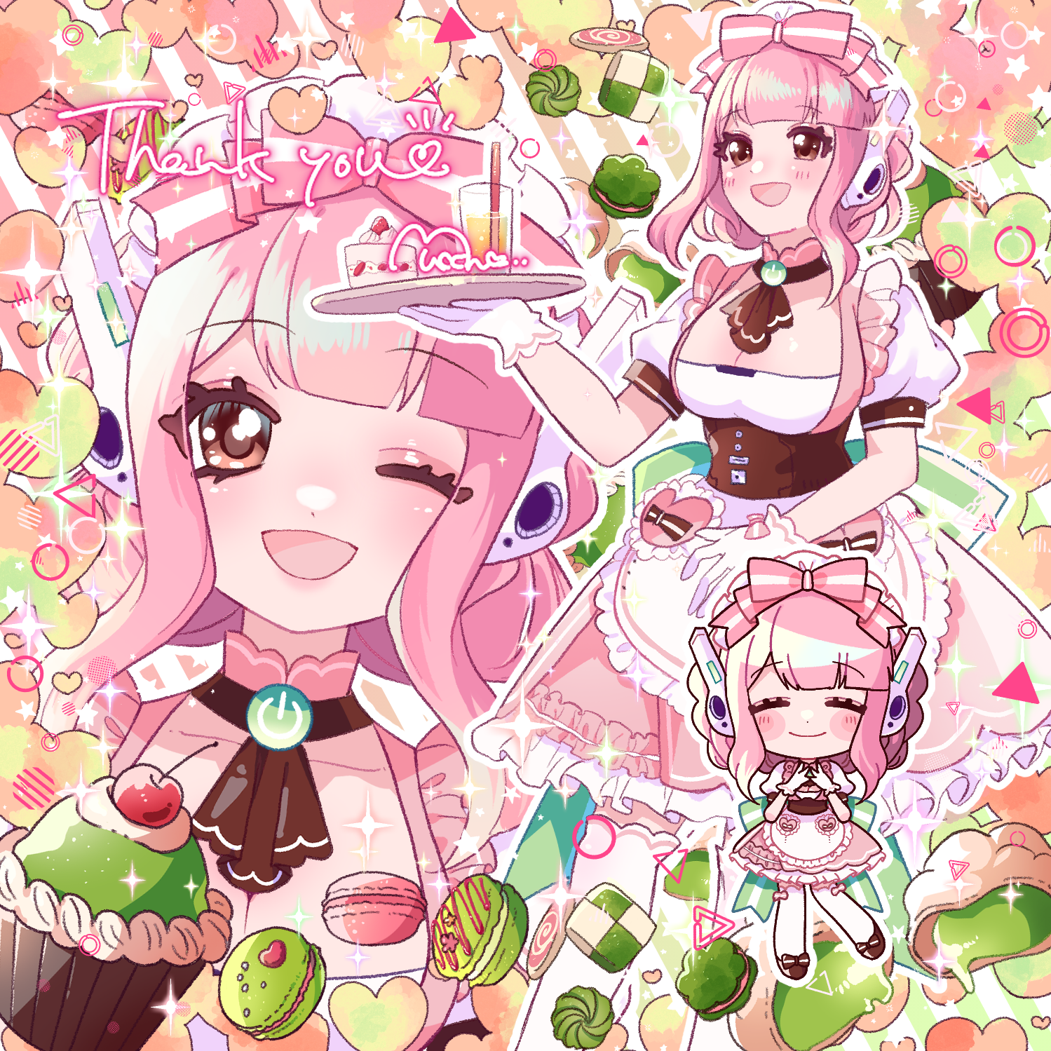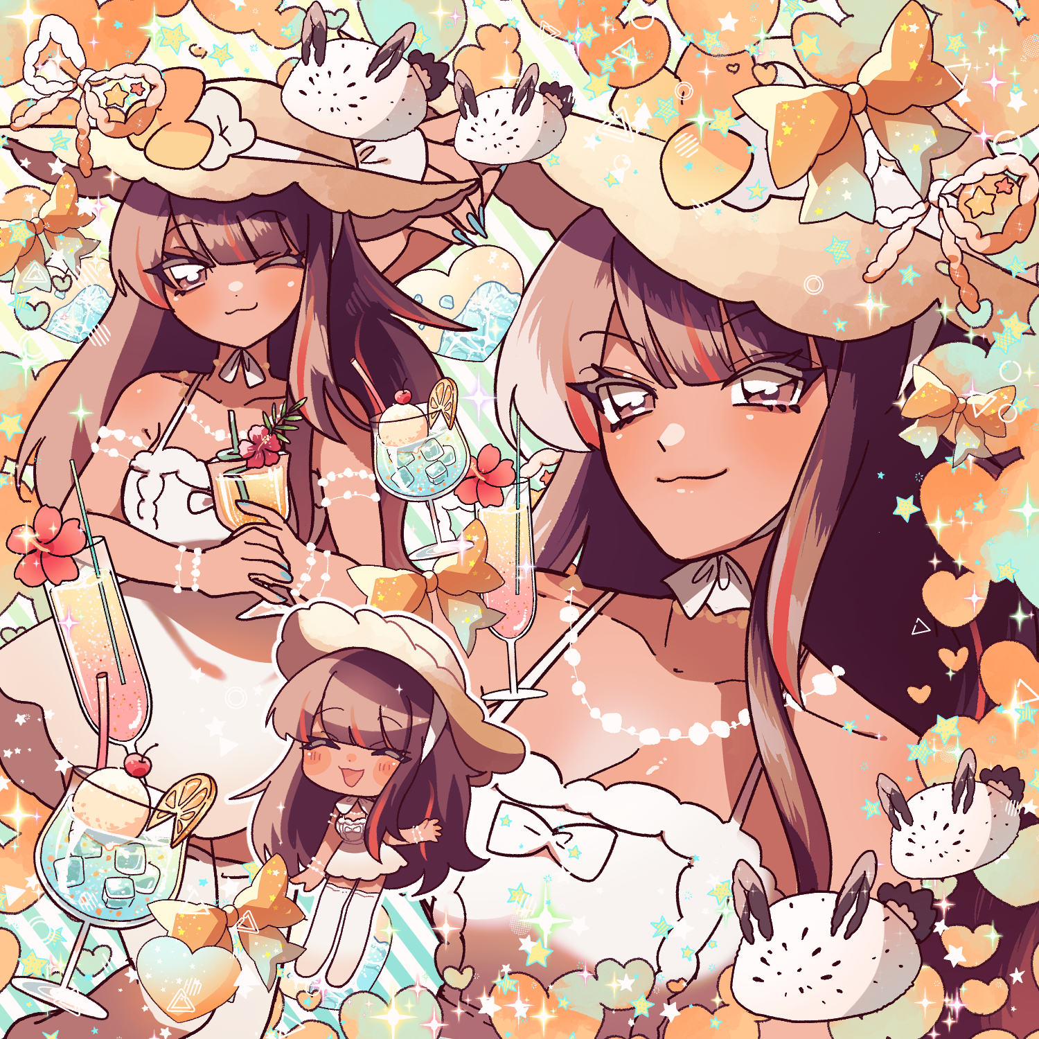 skebでご依頼いただきました、バストアップ/全身/SD/小物詰め込みイラストです。