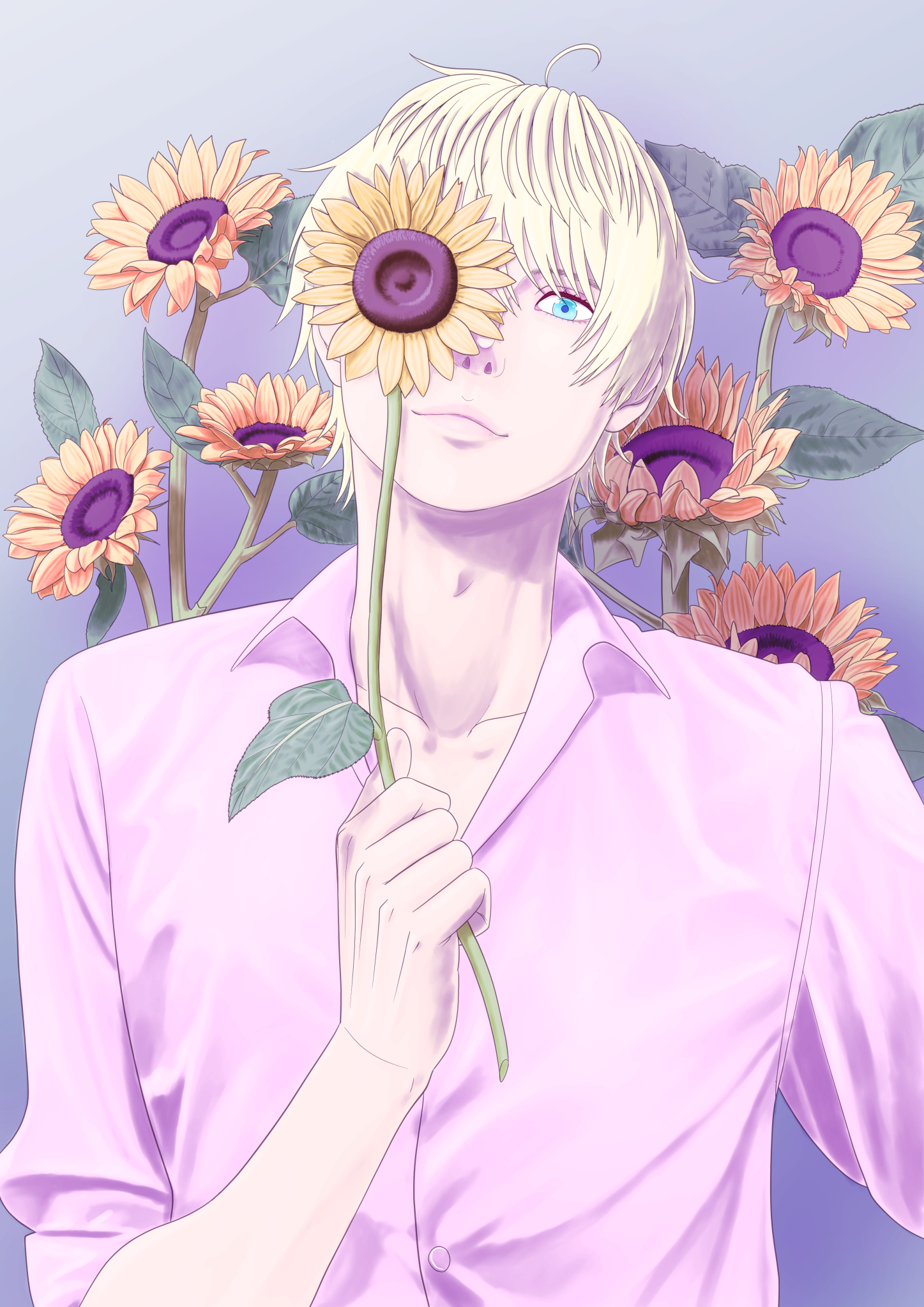 青年とひまわり