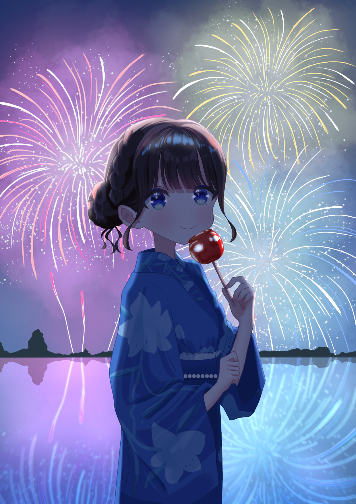アニメ寄りの絵柄で作成した、背景ありの本格的なイラストになります。