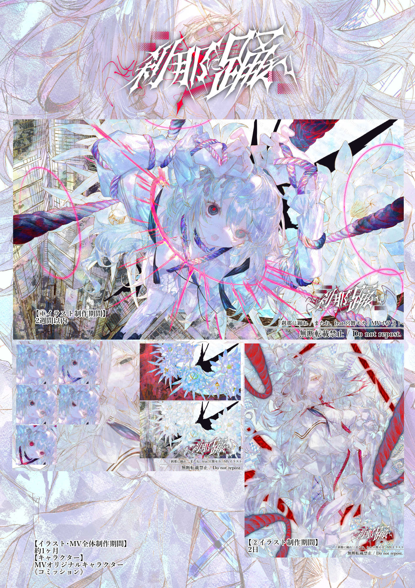 またね、様の『刹那に踊れ』と言う楽曲のキャラクターデザイン・イラスト・アニメーション・MVを制作させていただきました。
