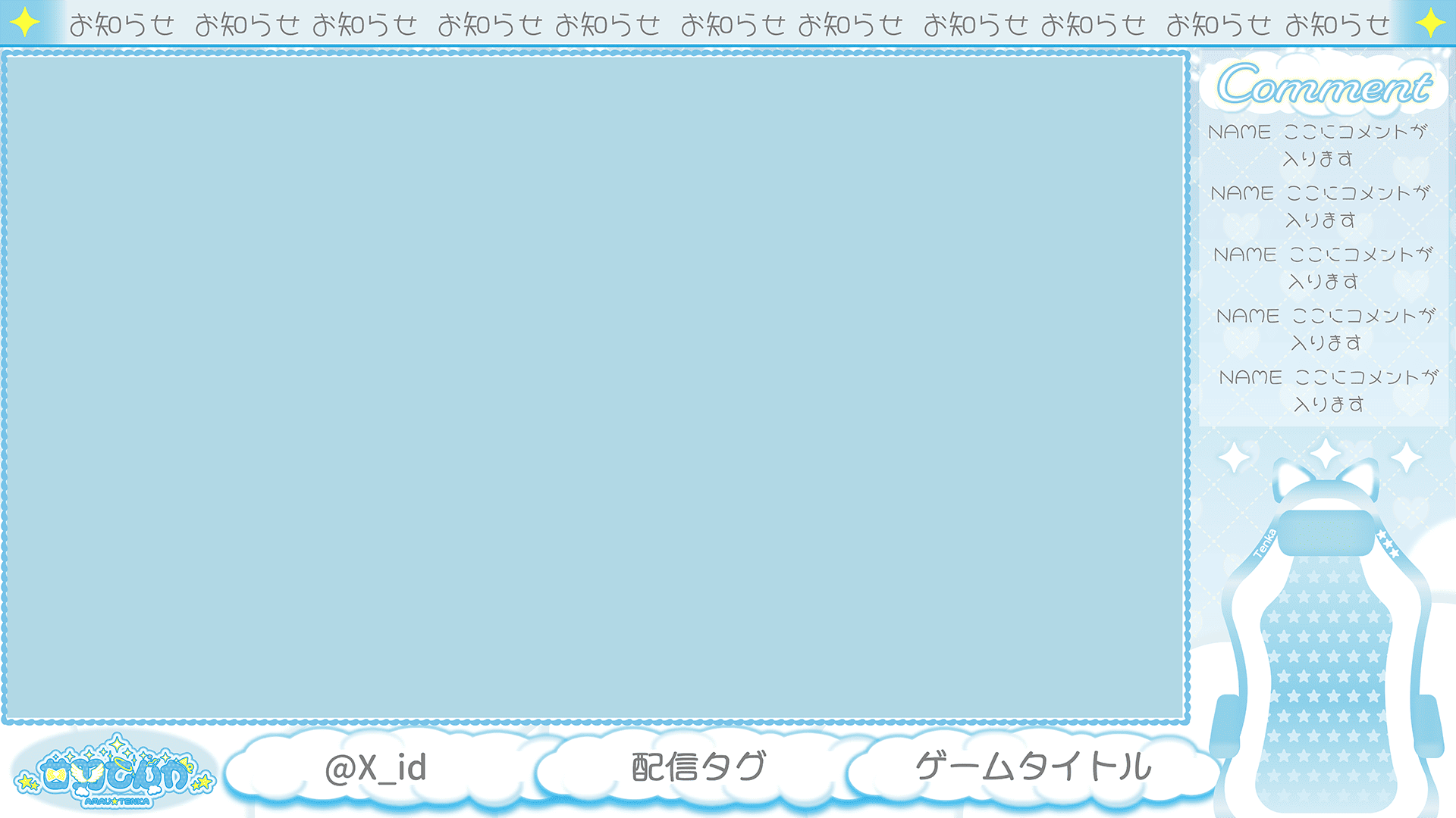 オリジナルキャラクターの配信画面を想定して作成しました。