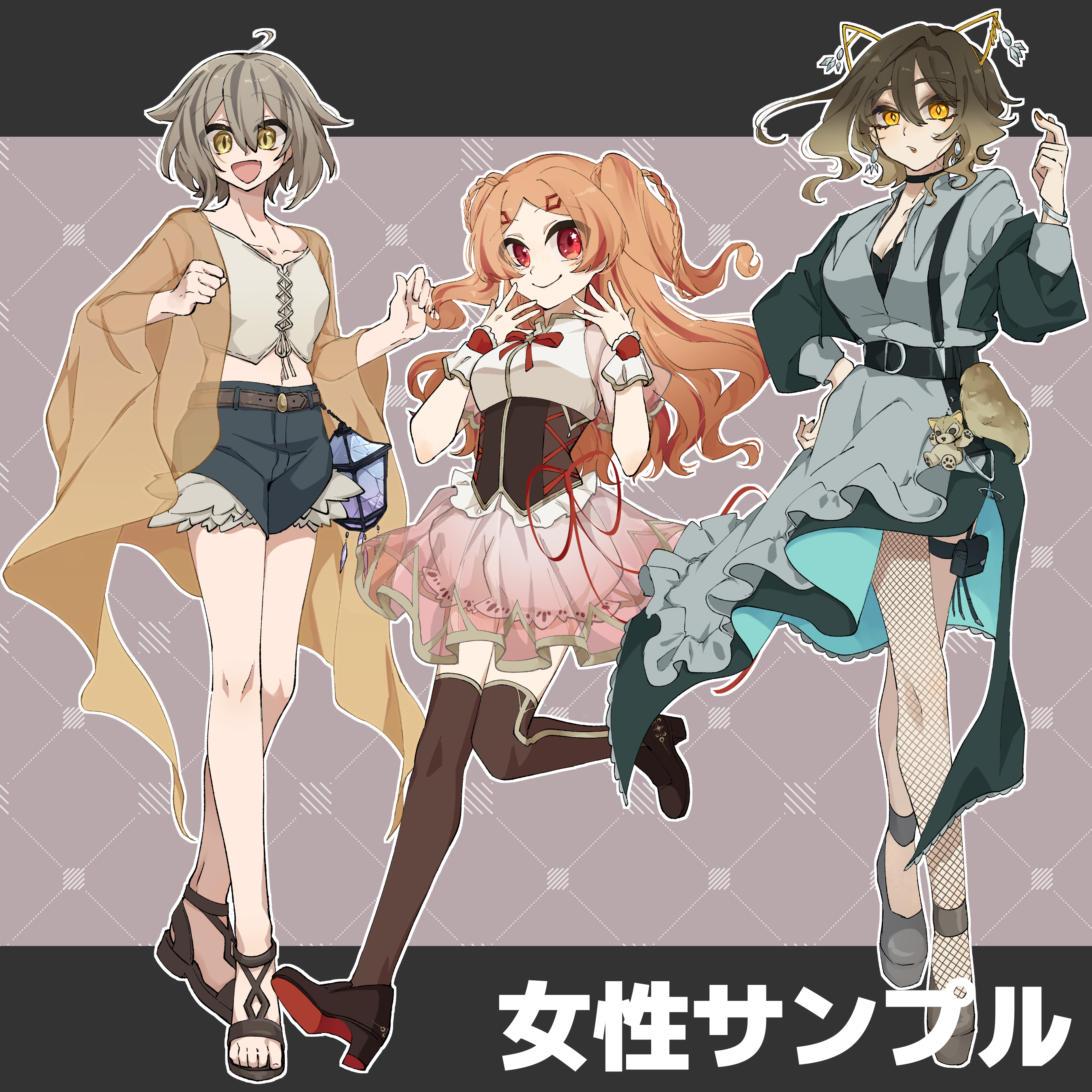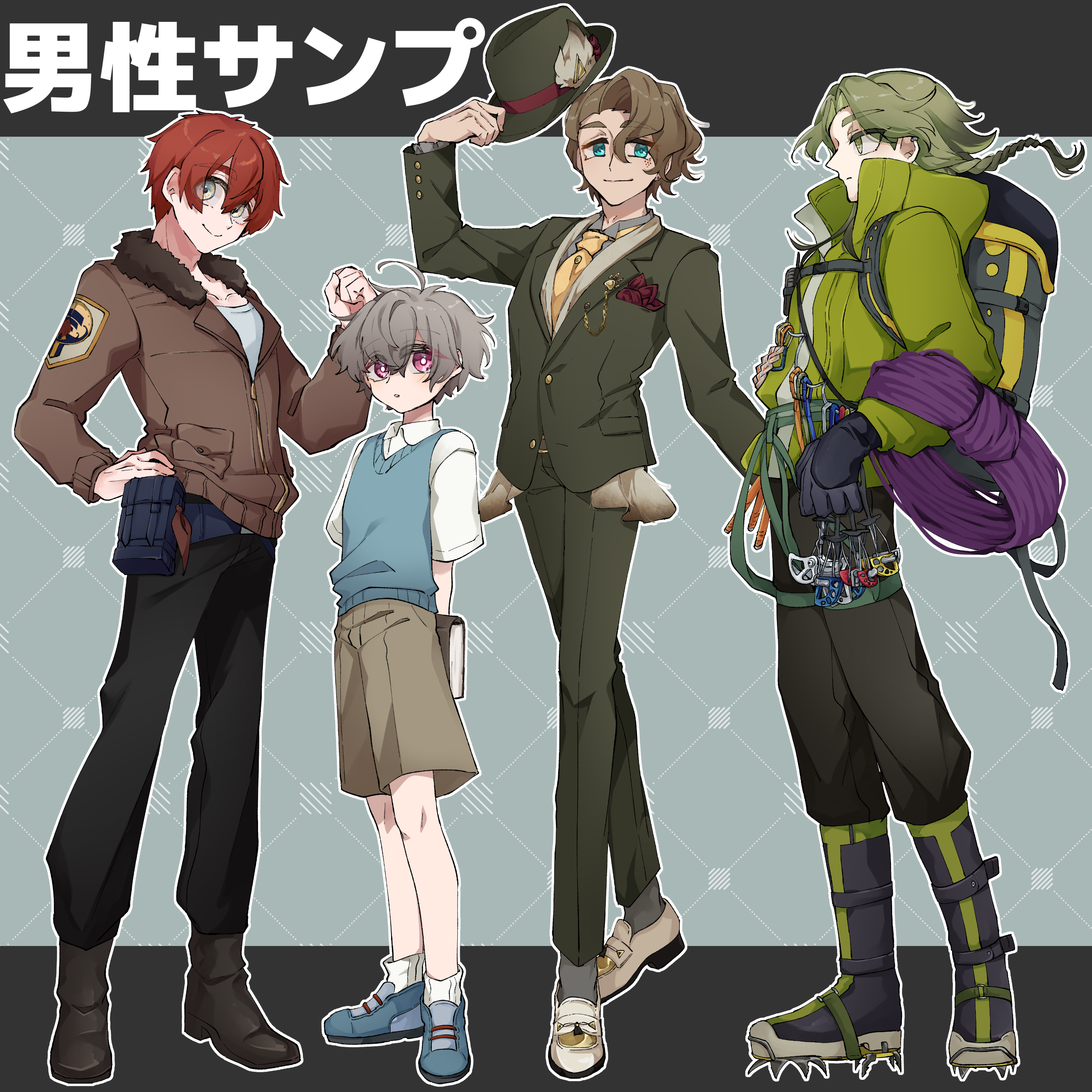 立ち絵の作例です。装備・装飾が多い立ち絵の場合別途追加料金がかかる場合があります(男性サンプルの一番右の立ち絵等)