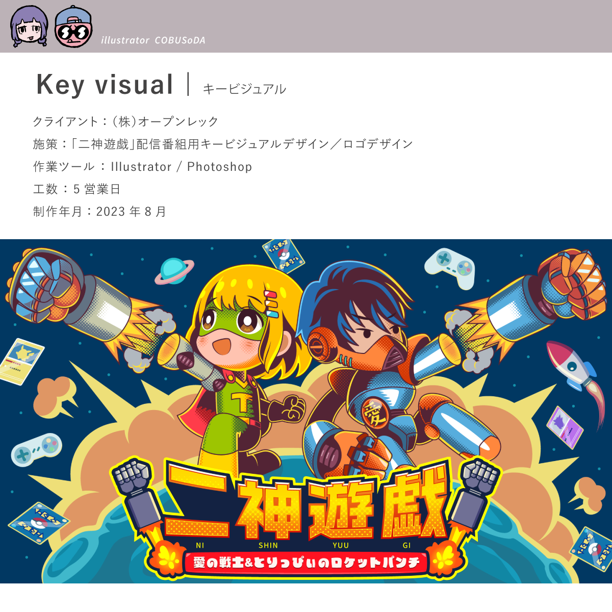 キービジュアルやグッズ用にぴったりな等身・デフォルメキャライラストを制作します!表情差分、小物追加、パーツ分けも対応可能。ポップで印象的な絵柄であなたの世界観をしっかり表現します。最短4日で納品OK!まずはお気軽にご相談ください✨