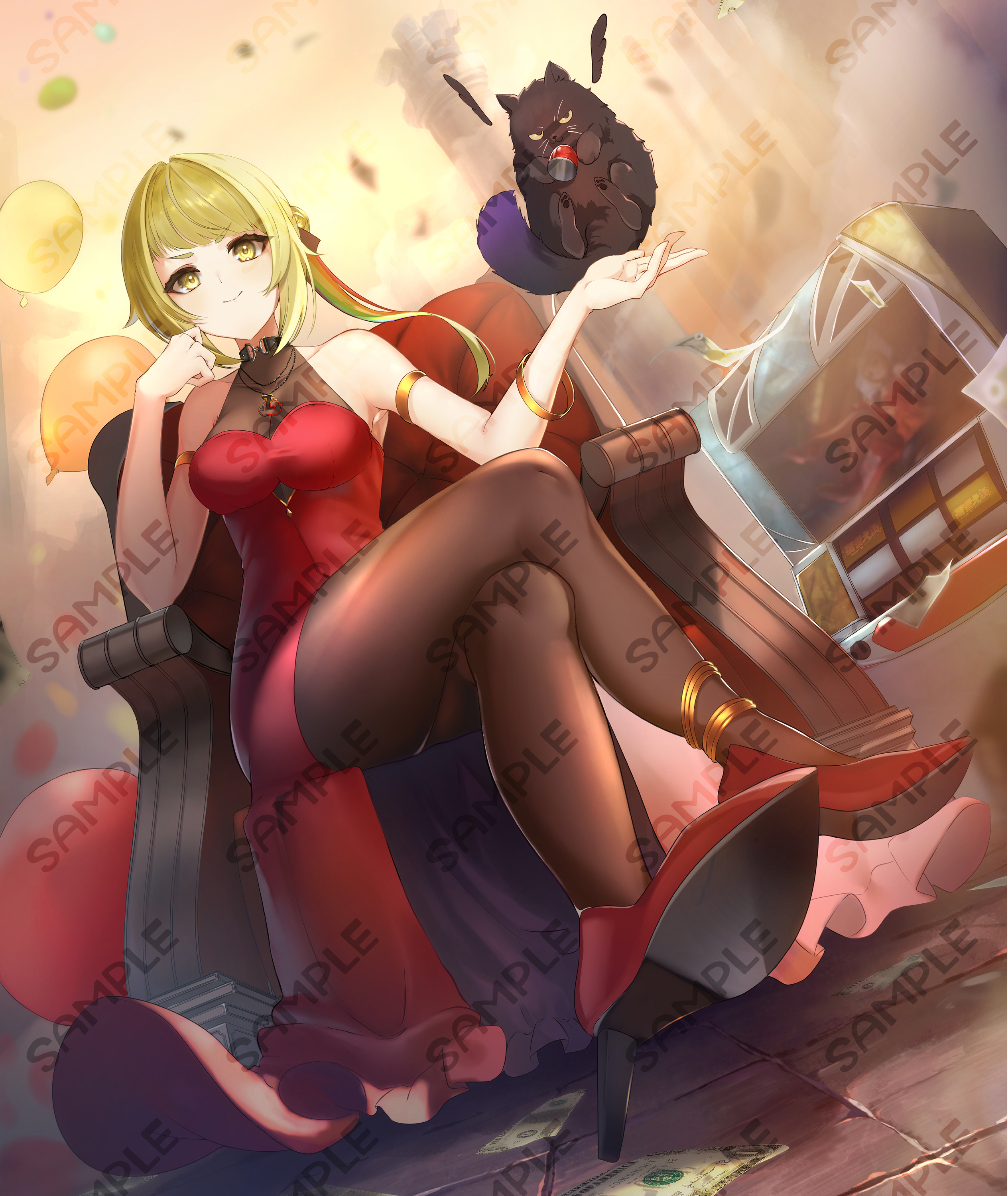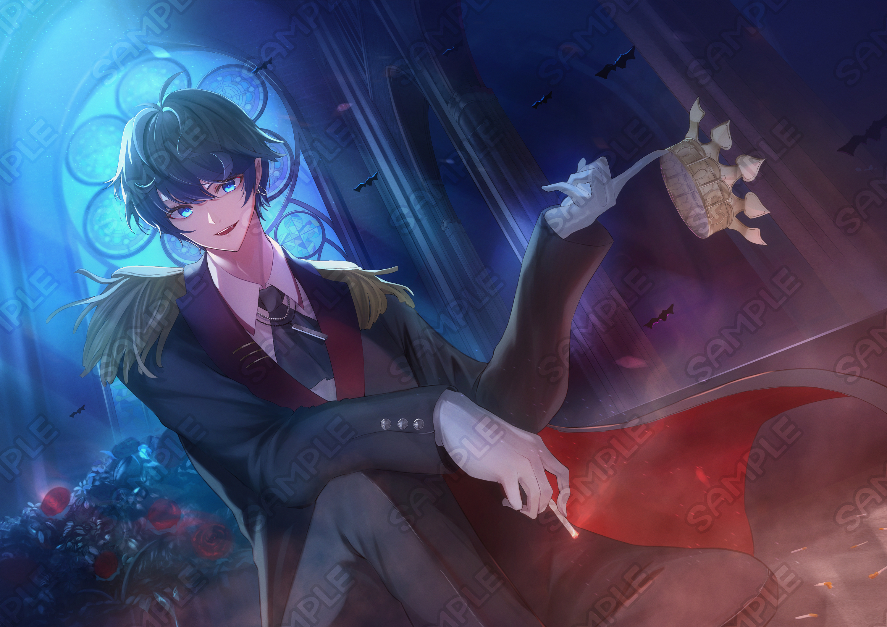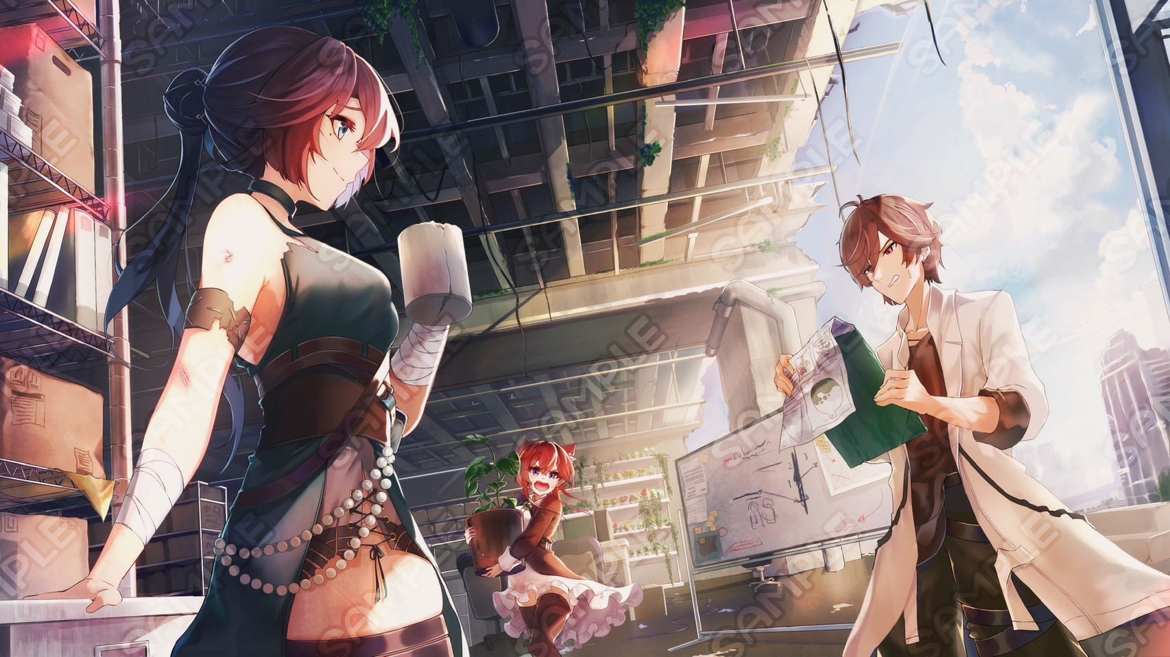 背景付き一枚絵のサンプルです。 キャラクターの人数や背景描きこみ量によって料金は変動します。