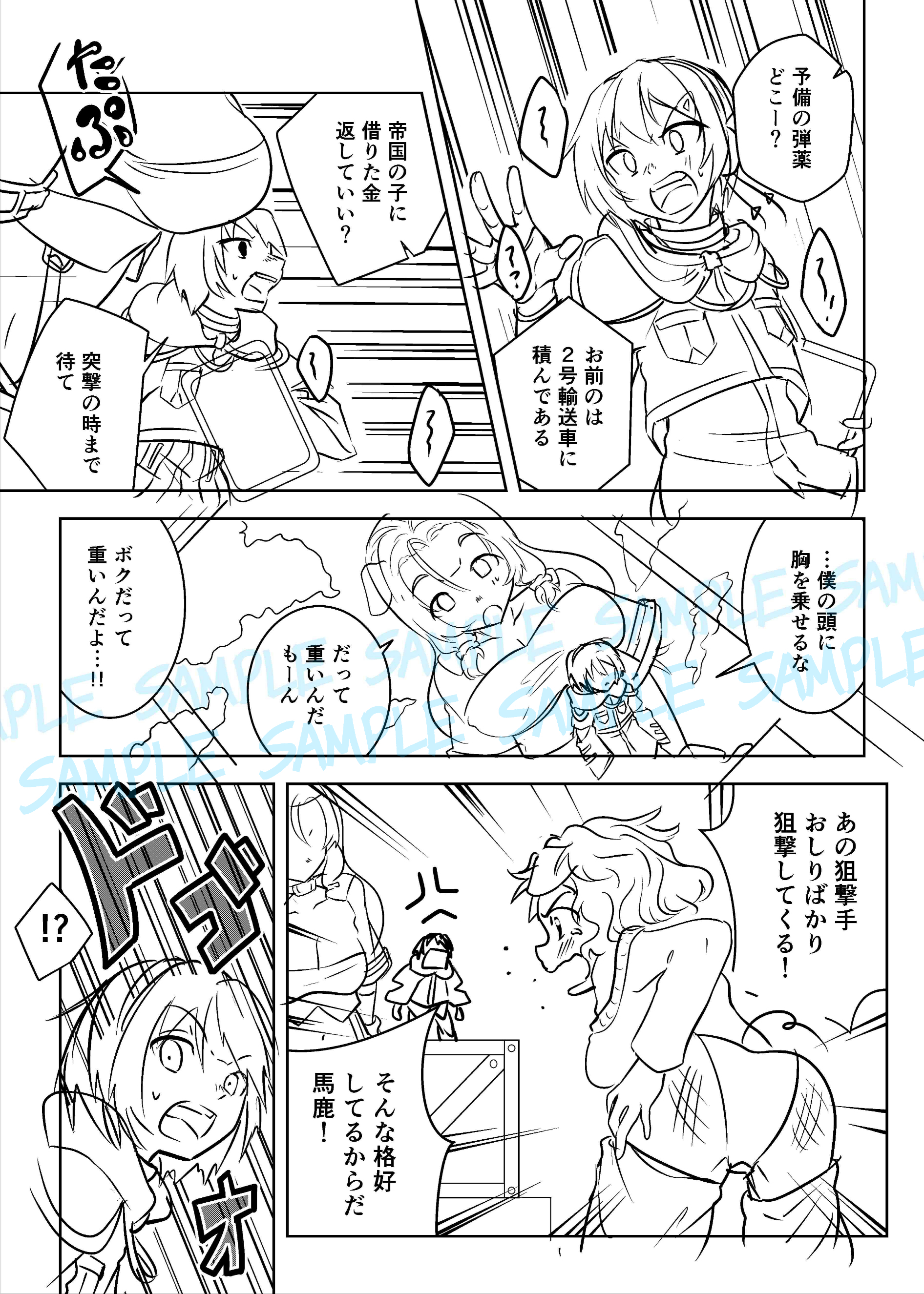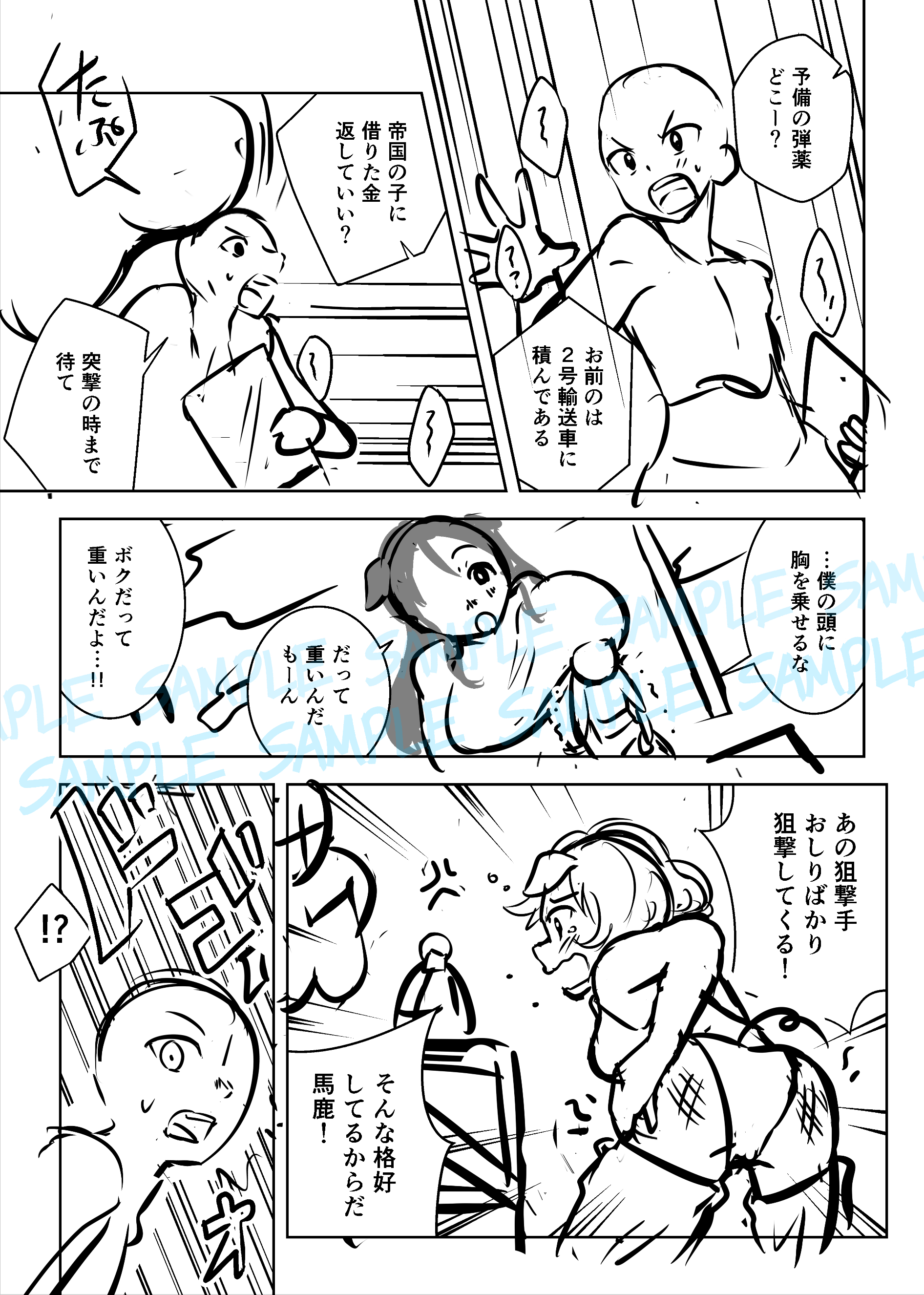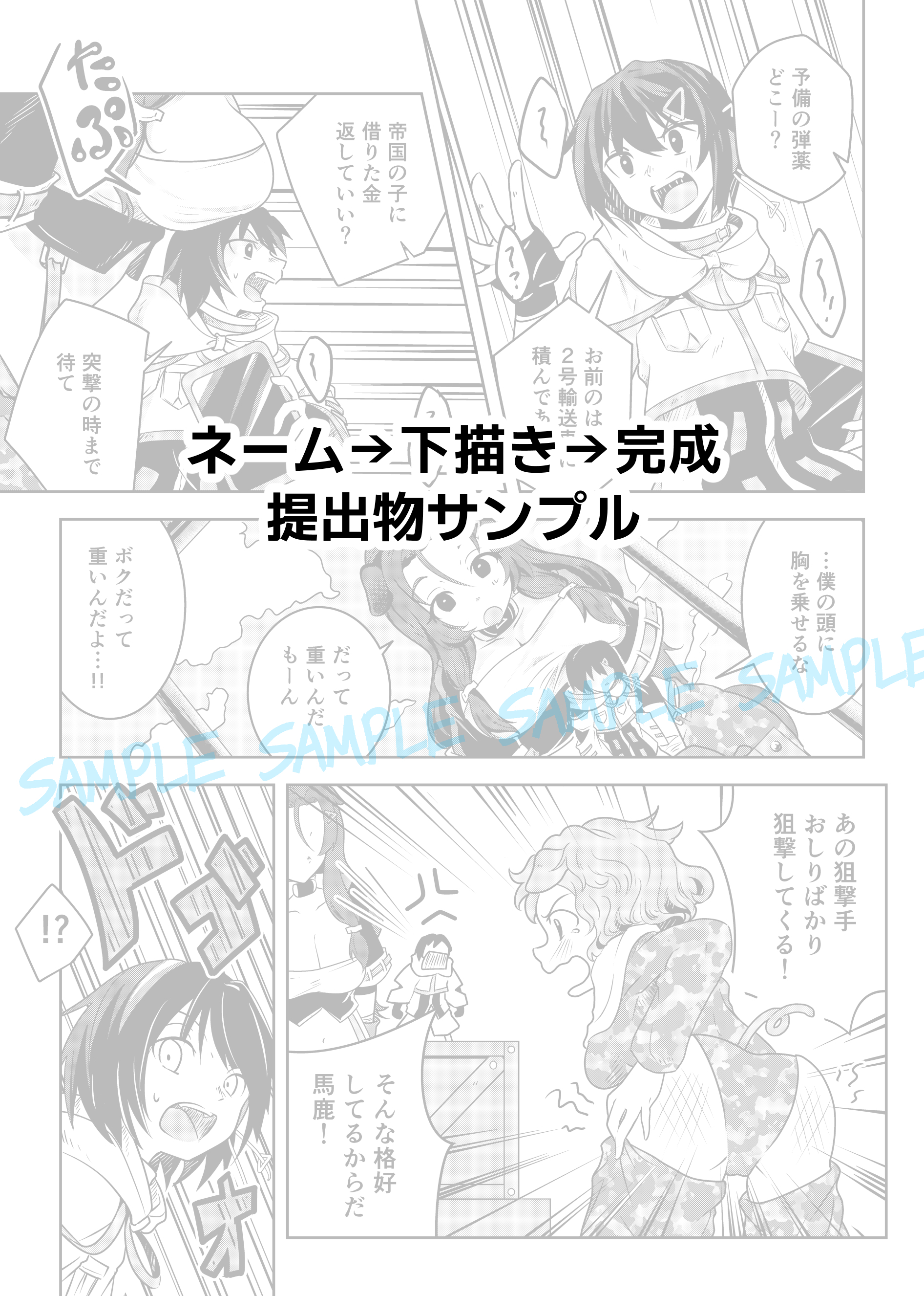 ご依頼時にお渡しする各工程のサンプルです。 ネーム、下描き、完成原稿の順になります。 2025年11月に実際に納品した作品の一部を、ご依頼者様のご厚意で掲載しています。