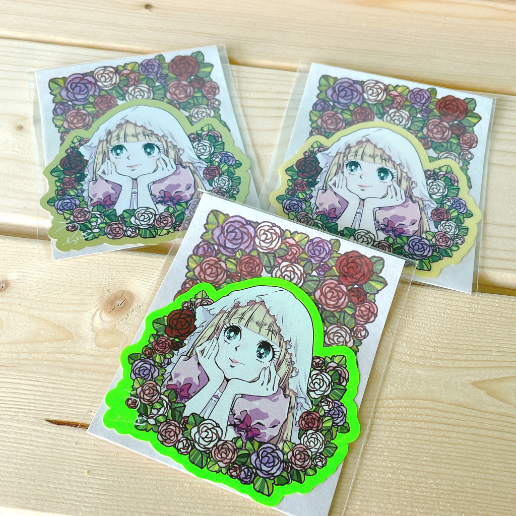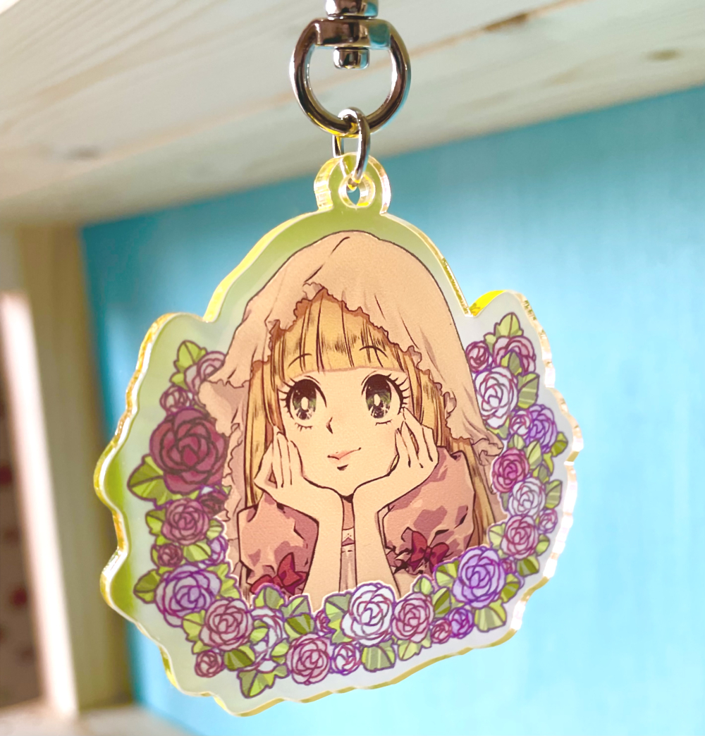 ダイカットステッカーやアクリルキーホルダーなどグッズ化したイラストです