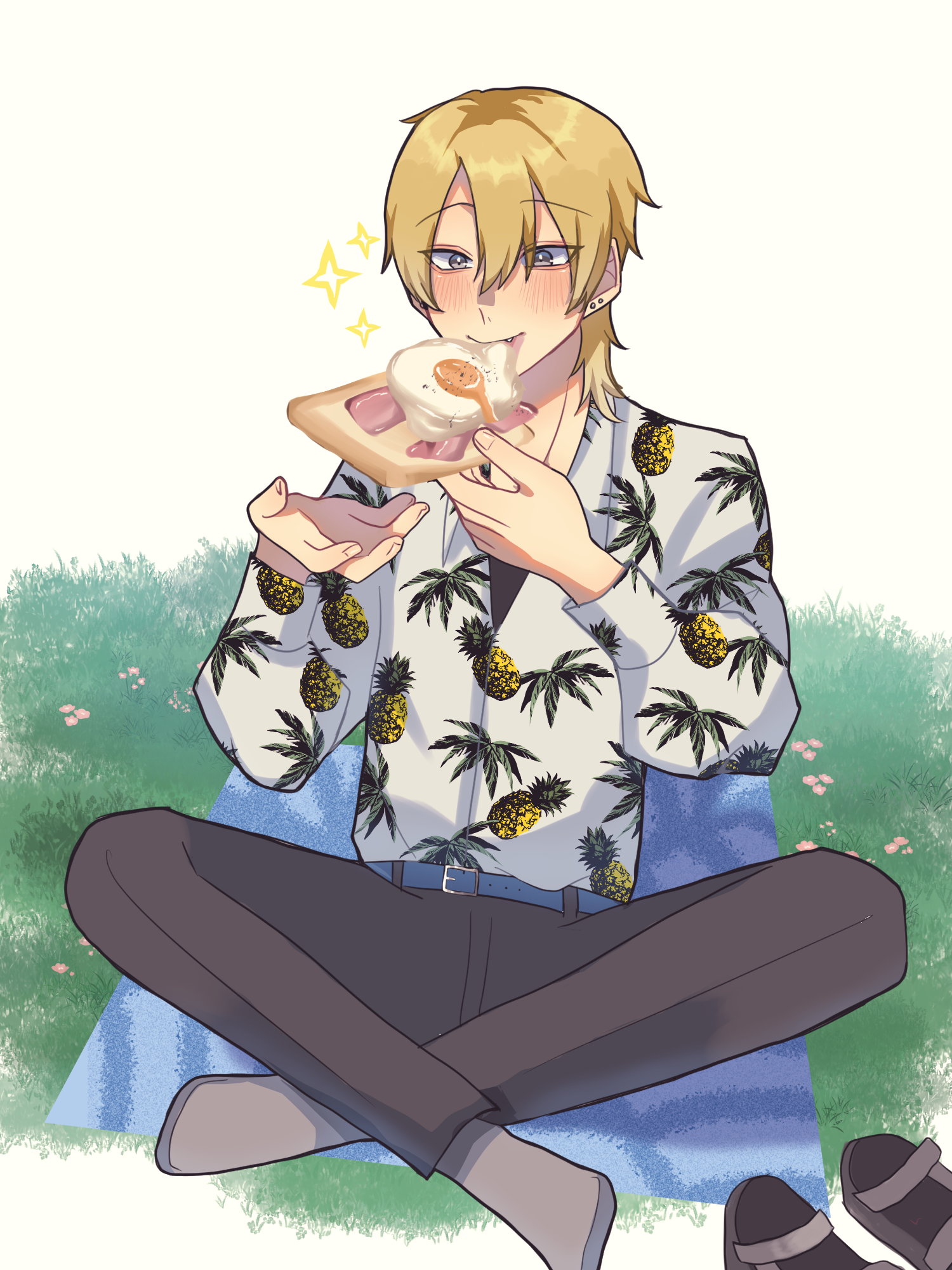 美味しいものを食べる男の子はかわいい!と描きました☺️ 食べ物の練習です✨