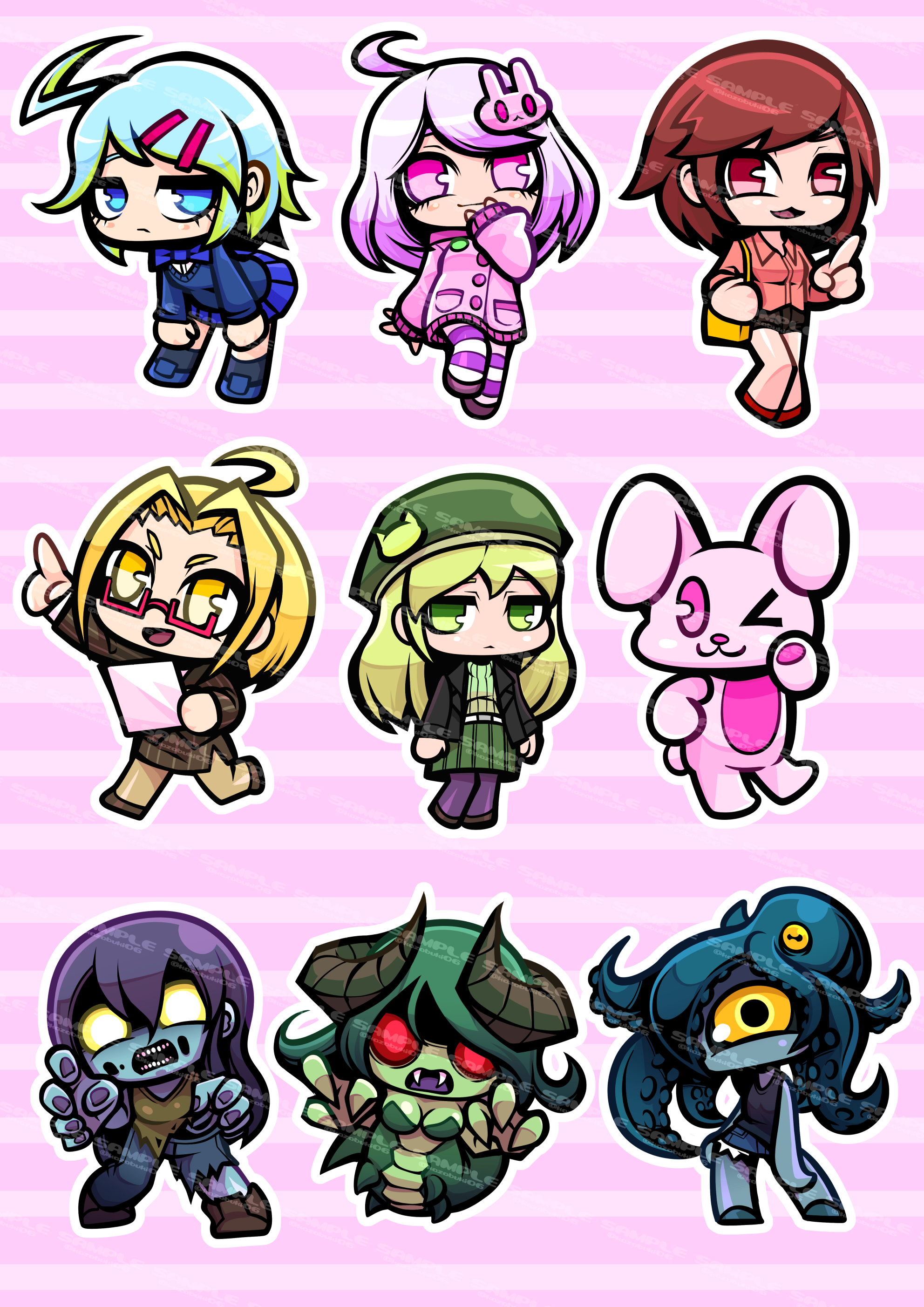 過去に制作したデフォルメ・ミニキャラクターの一部をご紹介いたします。 こちらのようなテイストのデザインを 1点6,000円 で制作いたします。