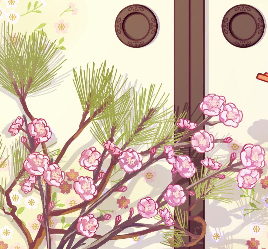和風の暖かい雰囲気のお正月イラストです。 背景やキャラクターの描き込みやデザインのご参考にして頂けると幸いです。 ・動画用サムネイルの比率ですので配信利用などのご参考なればと思います。 ・配信タイトル等の追加に対応出来るように左側にスペースを作った構図になっております。