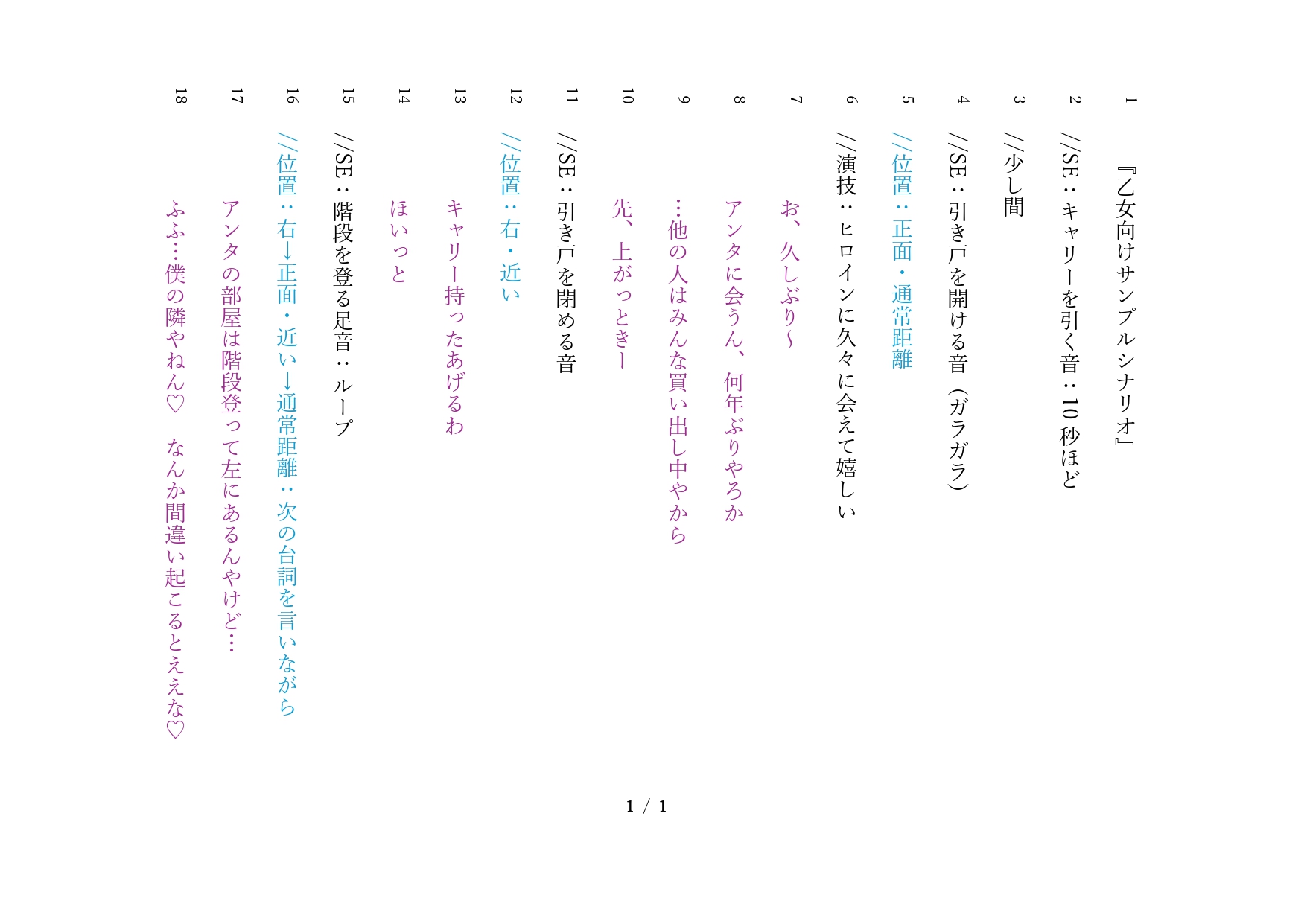 声優さんが分かりやすいように文章を色分けすることも可能です。 ヒアリングの際に、「声優さんにそのまま渡せる状態で」とお伝えください!