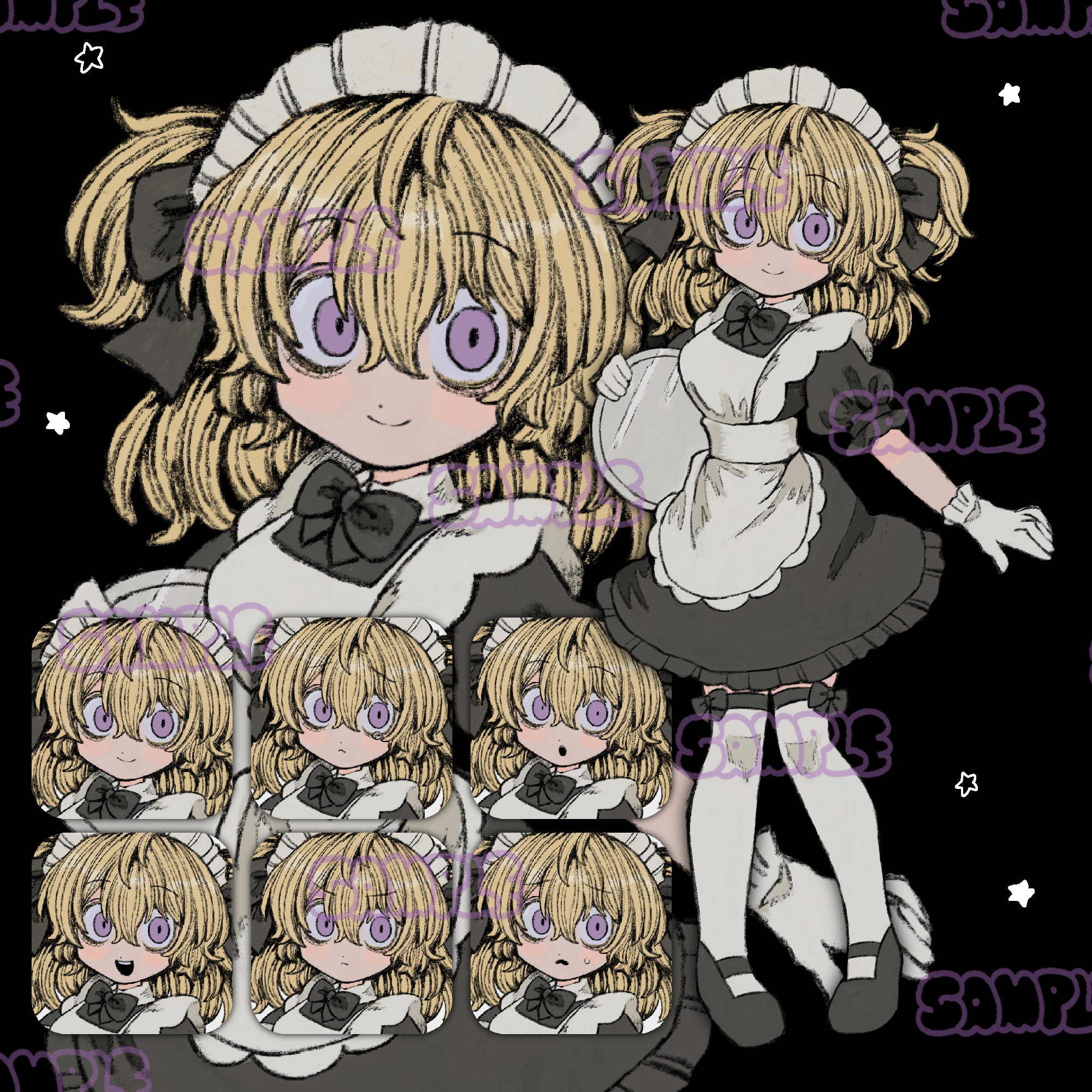 【表情6種】メイド服の女の子