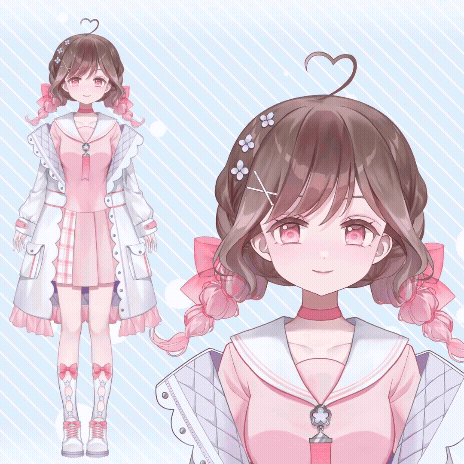 目 :笑顔、びっくり 目玉:360° 眉 :上下、表情連動 顔 :左右、傾き 髪 :肩まで 体 :左右、傾き 揺れ:瞳、ハイライト、ハイライト拡縮、髪横(2段)、頭部装飾、服、胸