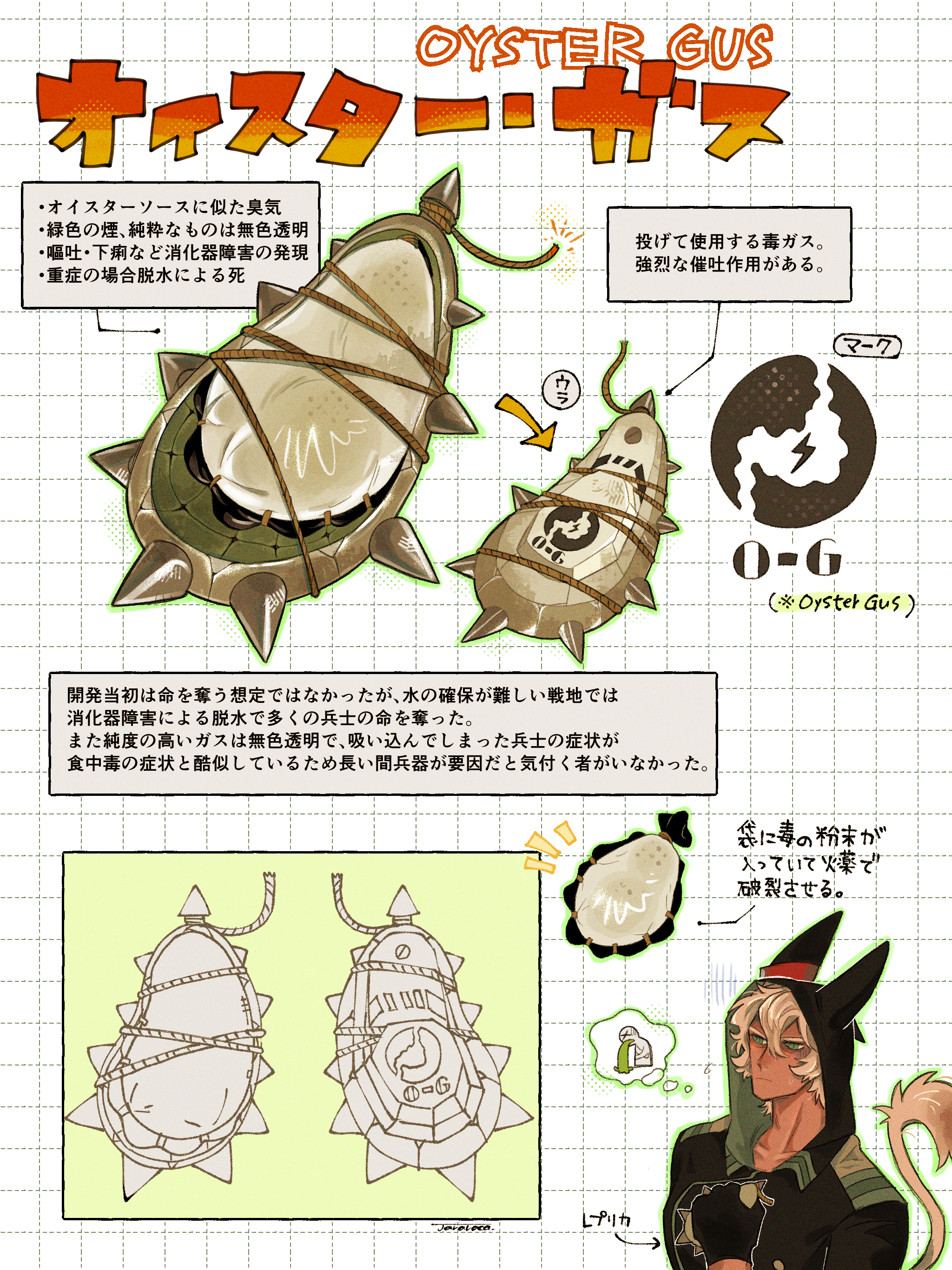 創作に登場するオリジナル兵器のデザイン。マスタードガスがモチーフ。