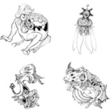 「ペン画」人外、異形白黒イラスト制作