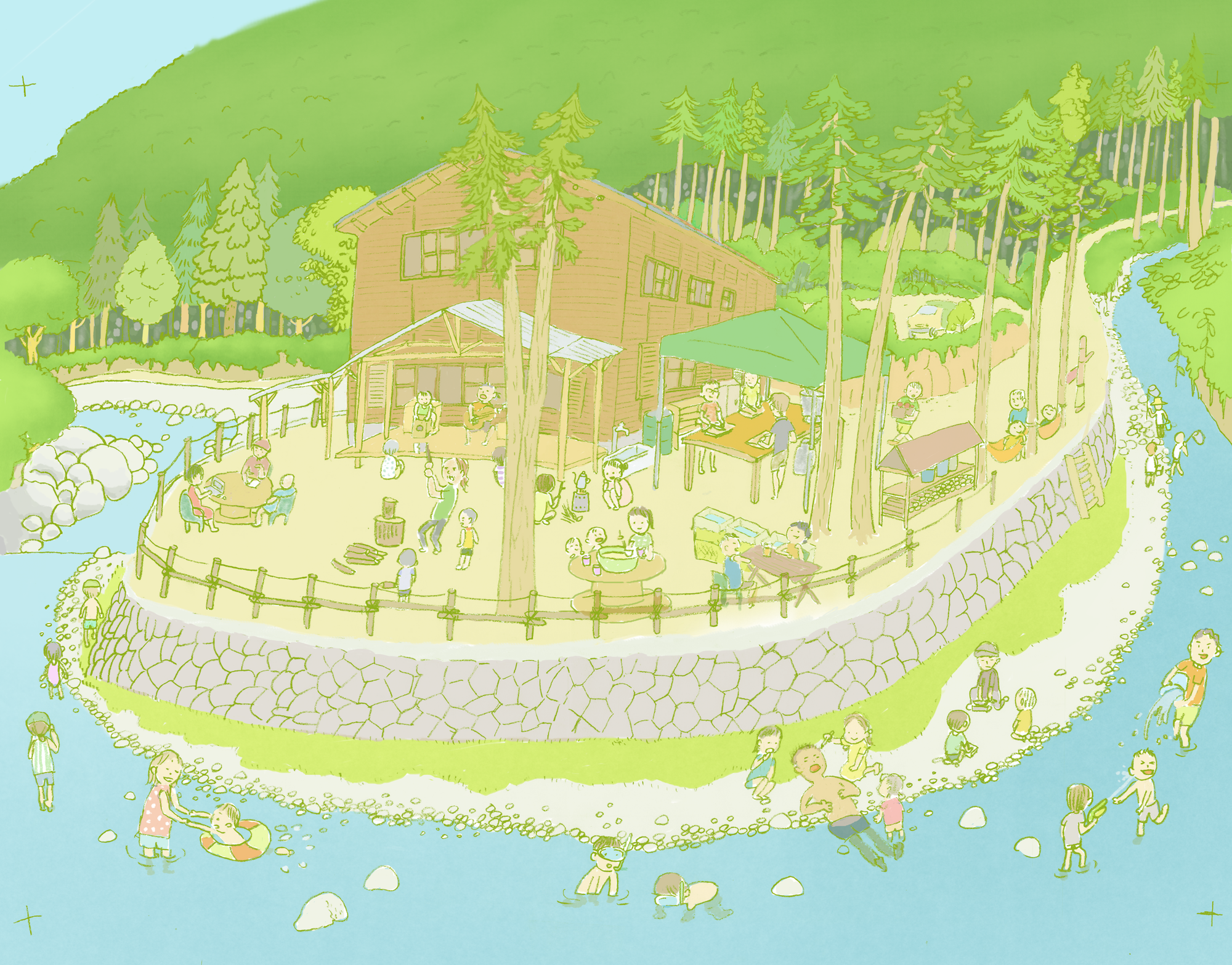 保養キャンプのパンフレットのために製作したイラストです。