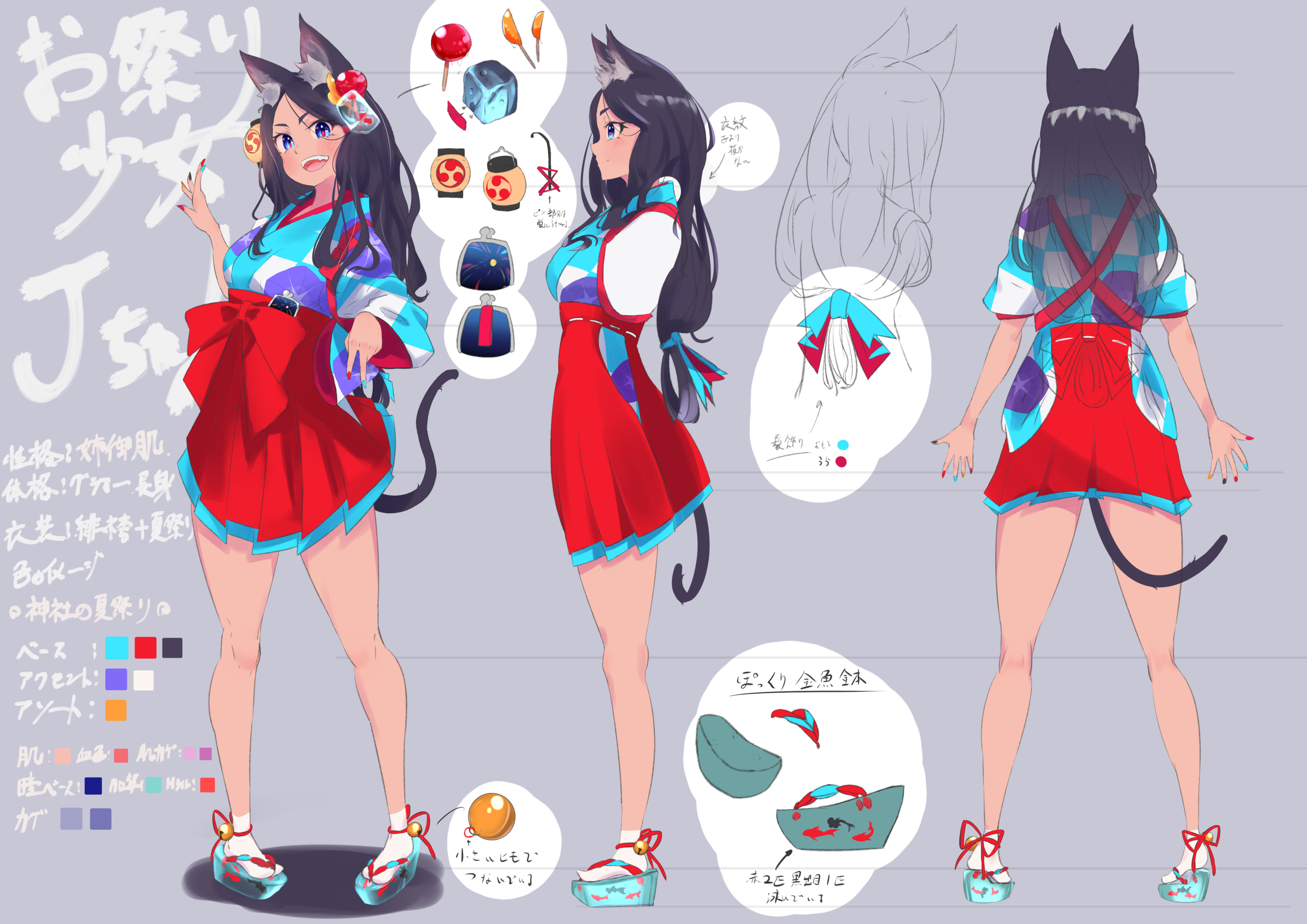 オリジナルキャラの3面図サンプルです。