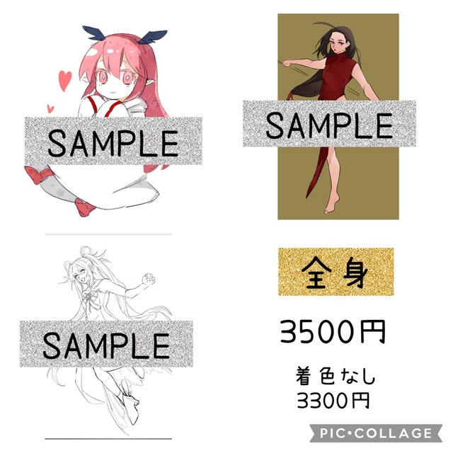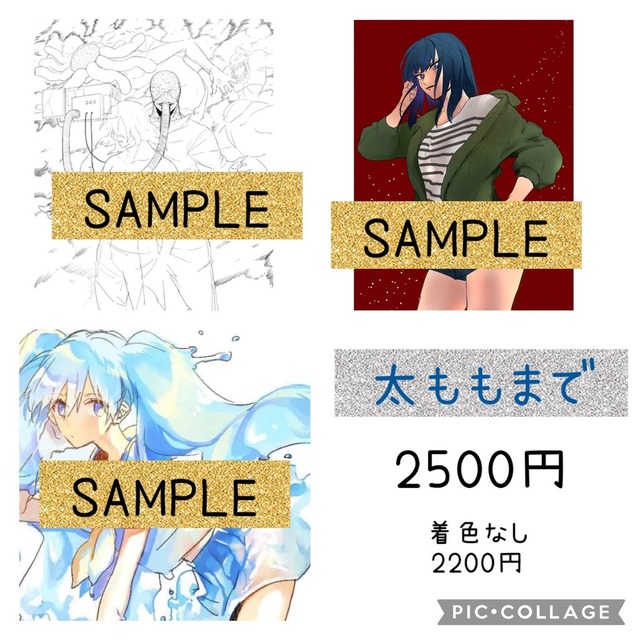 ※衣装や小物、背景などの有無や複雑さによって描き込みが多くなる度に金額は変動します。