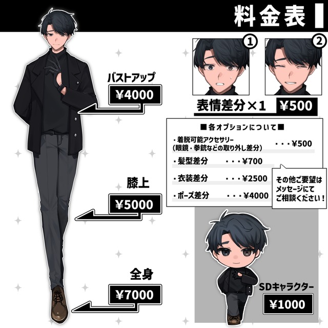 ・SDキャラクター ・・・¥1000 (2.5頭身または3頭身のみの受付)