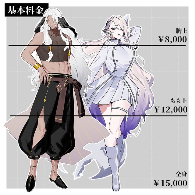 修正のお願いにも丁寧に対応してくださり本当にありがとうございました……!!今回もとっても美麗で素敵な立ち絵を描いていただき幸せです!機会がありましたらぜひまた依頼させていただきたいです。本当にありがとうございました!