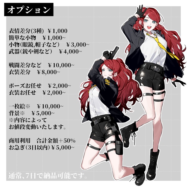 リピートで、以前描いていただいた立ち絵の私服バージョンを依頼させていただきました。