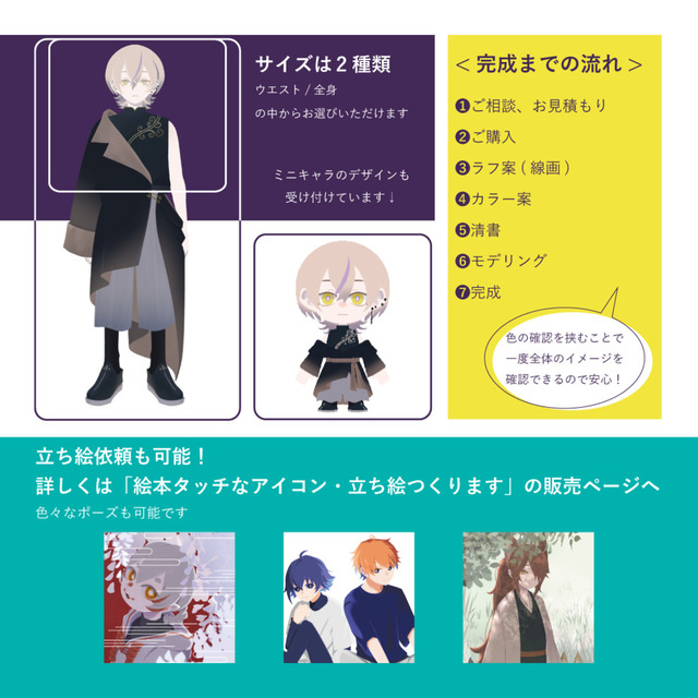 人物イラストとその他小物のイラストを依頼させていただきました!