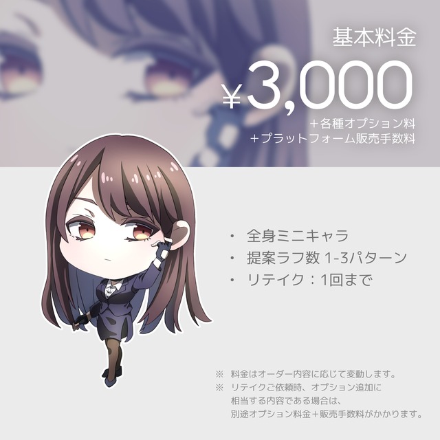 ・大幅なリテイク・描き直しについては追加料金をいただきます。ご了承ください。