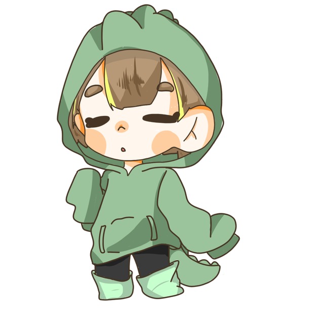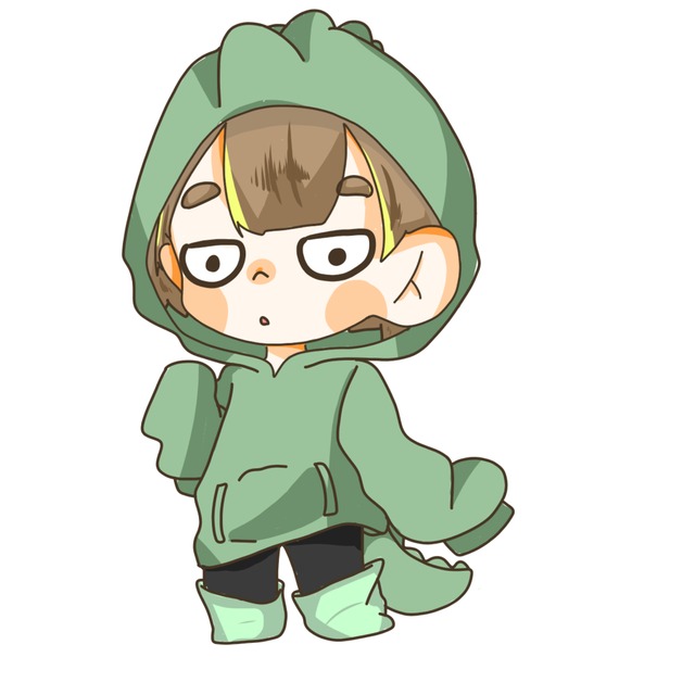 恐竜のようなフードを被った中性的な子です。