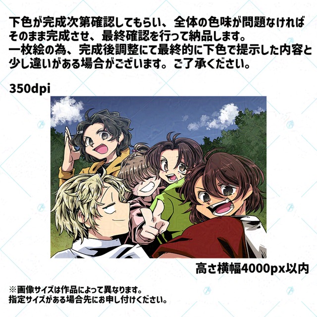 下書きを提示した際に最終値段確認と作品の全体的な完成確認をお願いします