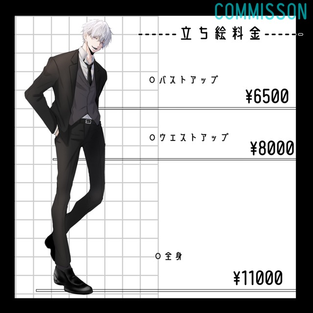 ・小物などが複雑なイラスト(楽器、武器など)は追加料金が発生する場合があります。