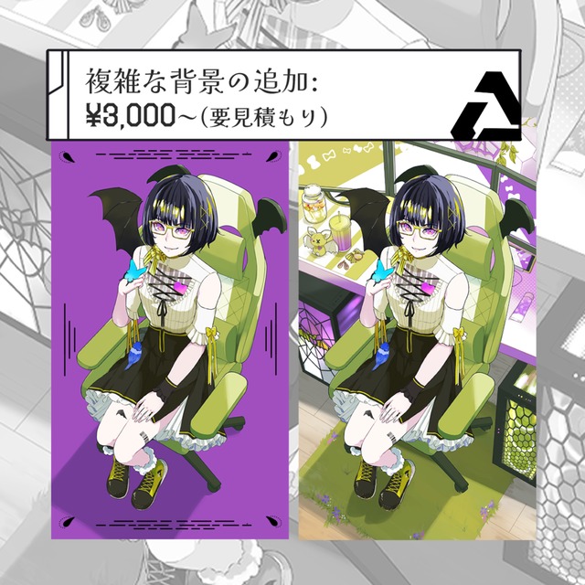 デザインお任せでの箇所があったのですが、キャラクターに合ったとても素敵なデザインをしていただきました!仕上がったイラストも格好良くて…!